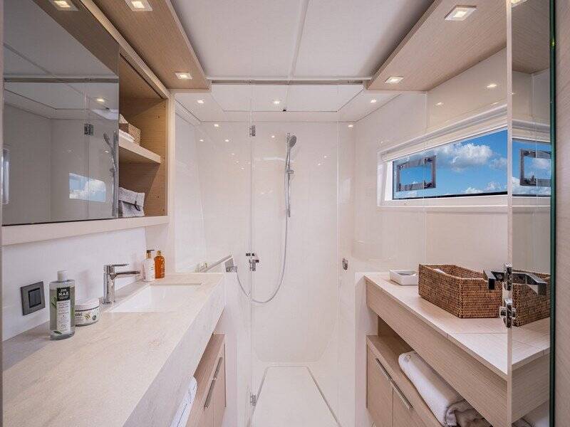 Catamaran Lagoon 46 Adrion, built in 2024 is anchored in the Marina Kastela, Split region, Croatia. It has 4 + 1 cabins, can accommodate 8 + 2 + 1 people and has 4 + 1 toilets. Bed linen and kitchen equipment are included in the price.