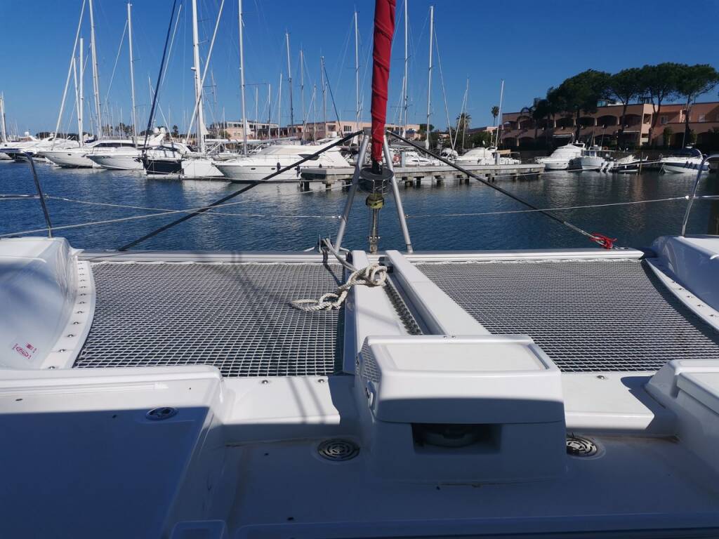 Catamaran Lagoon 46 Bambenella, built in 2021 is anchored in the Sicily, Portorosa, Sicily, Italy. It has 4 + 1 cabins, can accommodate 8 + 2 + 1 people and has 4 + 1 toilets. Bed linen and kitchen equipment are included in the price.