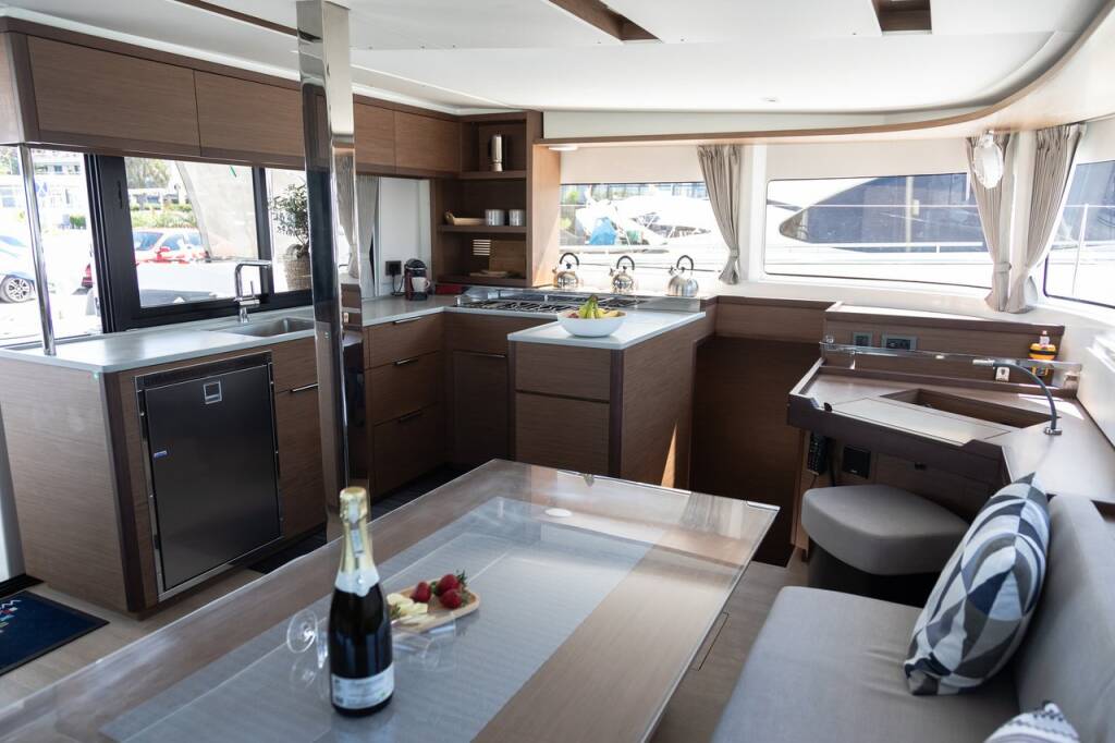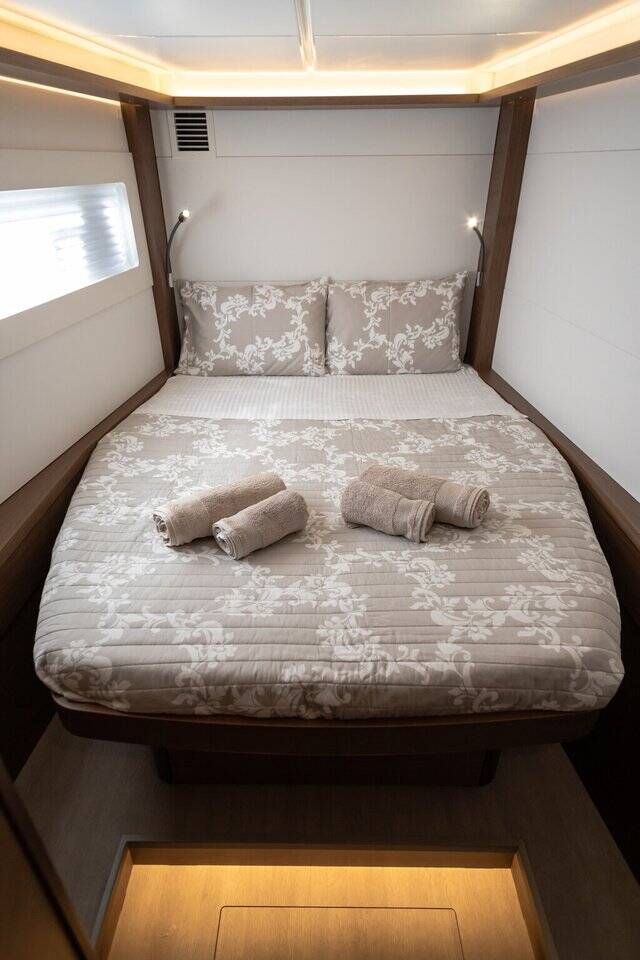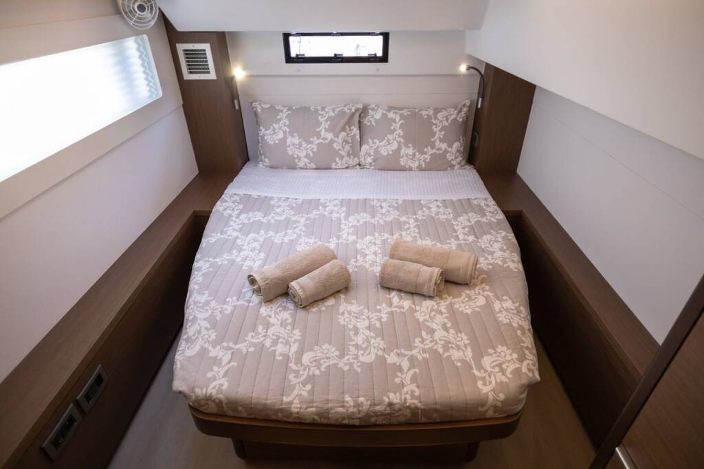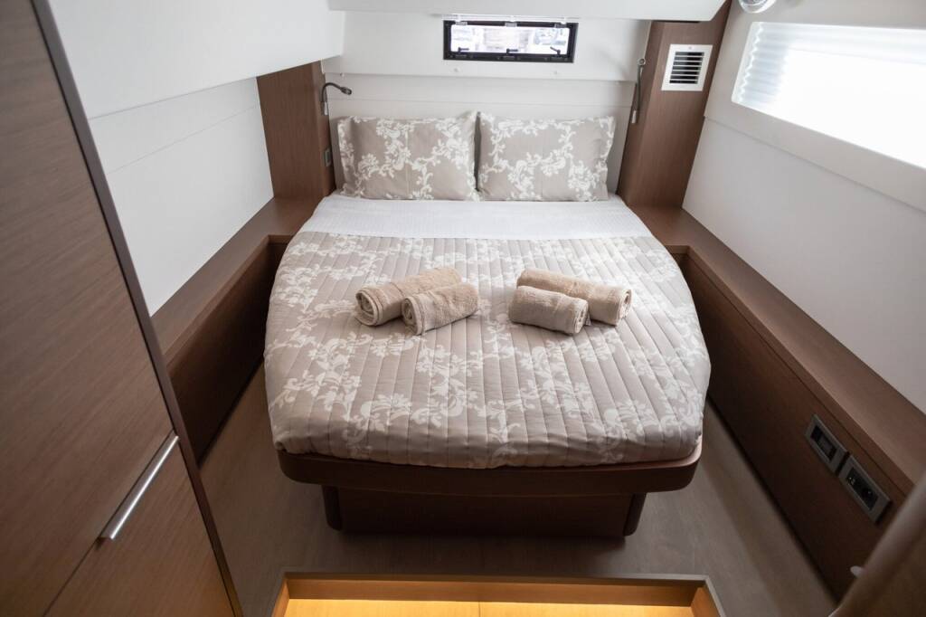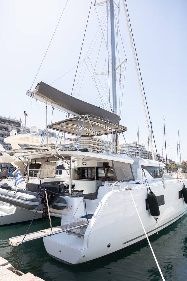 Catamaran Lagoon 46 El Marita, built in 2021 is anchored in the Lefkas, D-Marin, Ionian Islands, Greece. It has 4 + 2 cabins, can accommodate 8 + 2 people and has 4 + 1 toilets. Bed linen and kitchen equipment are included in the price.