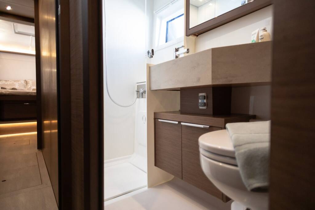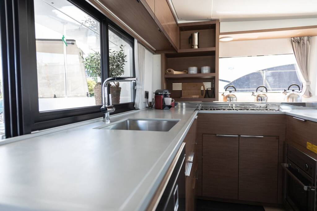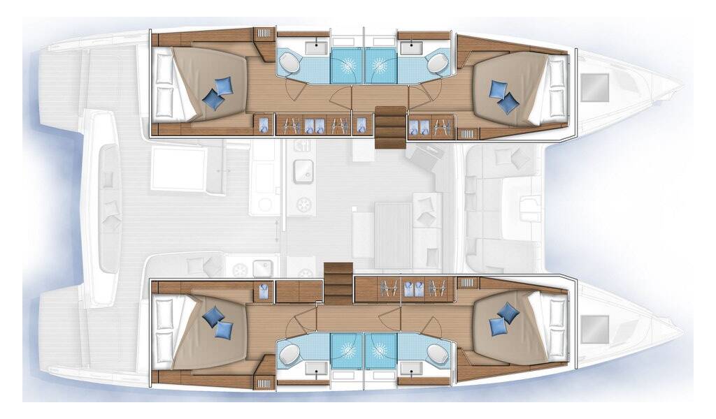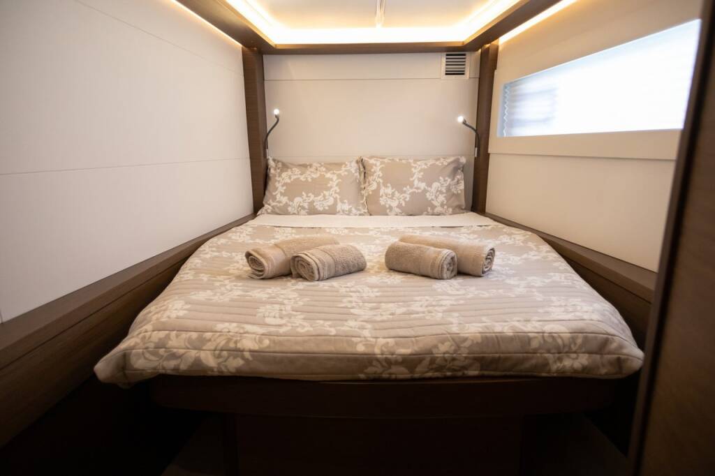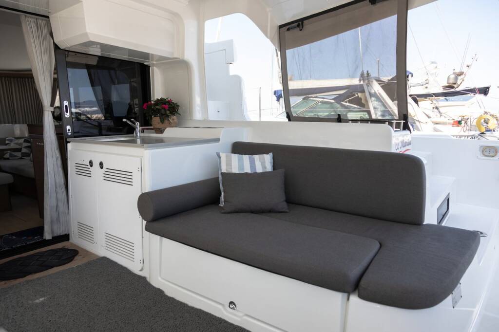 Catamaran Lagoon 46 El Marita, built in 2021 is anchored in the Lefkas, D-Marin, Ionian Islands, Greece. It has 4 + 2 cabins, can accommodate 8 + 2 people and has 4 + 1 toilets. Bed linen and kitchen equipment are included in the price.
