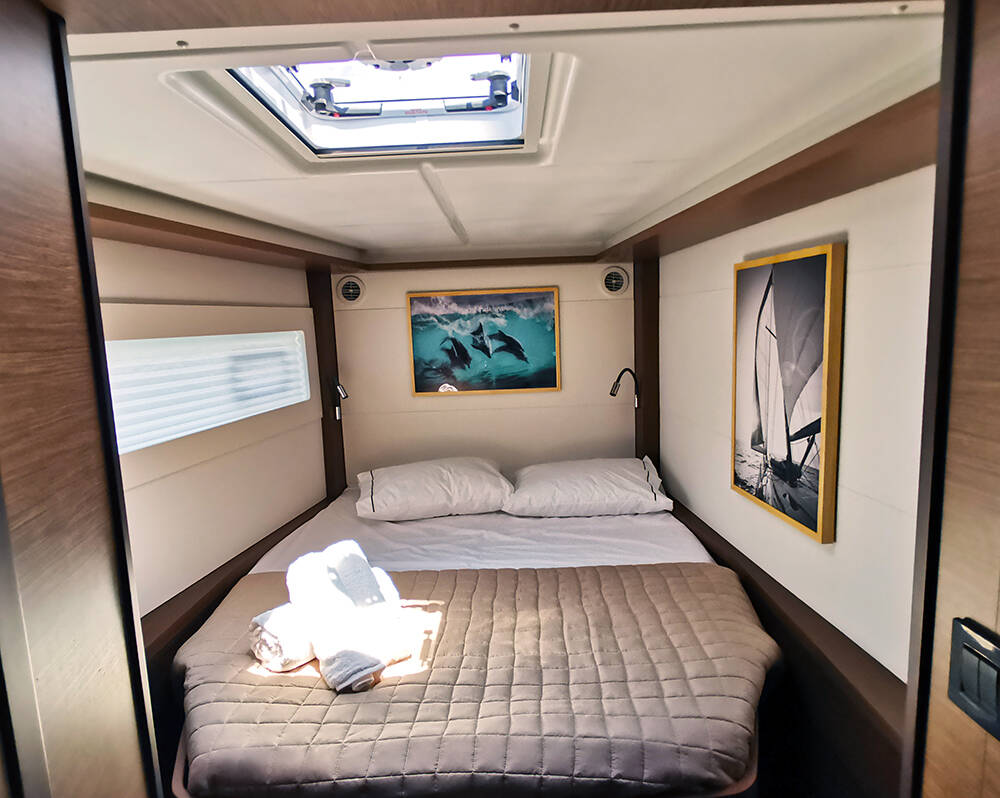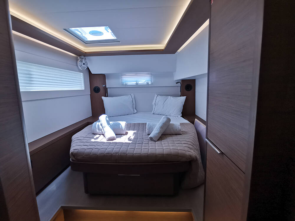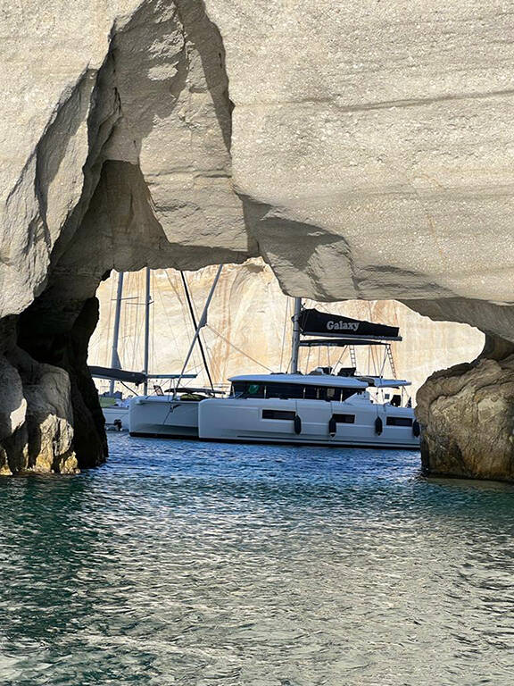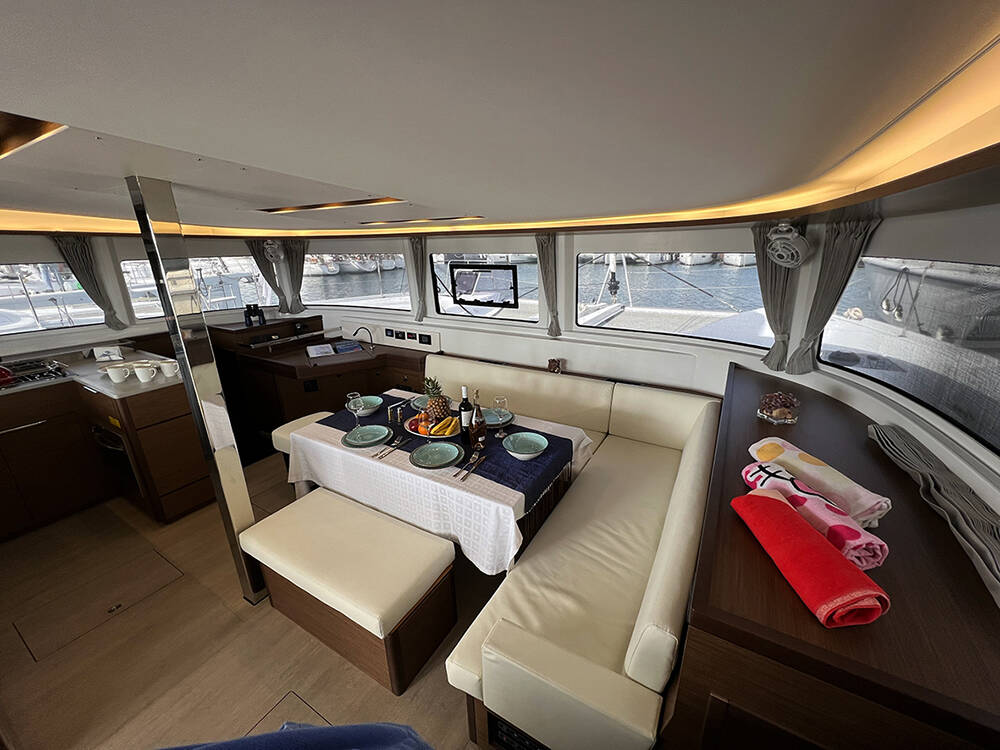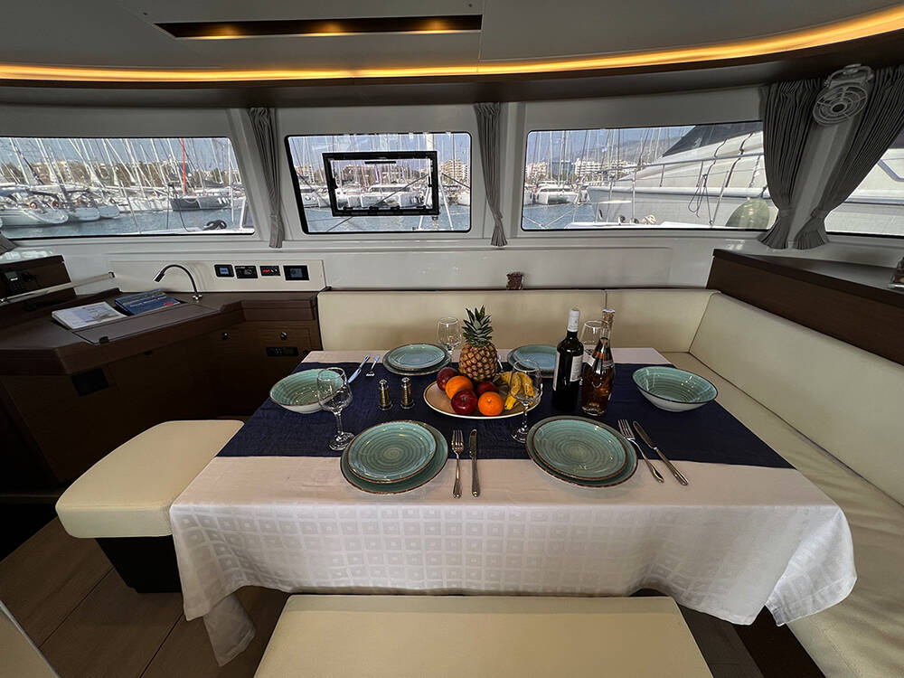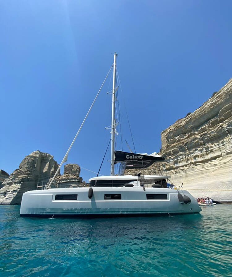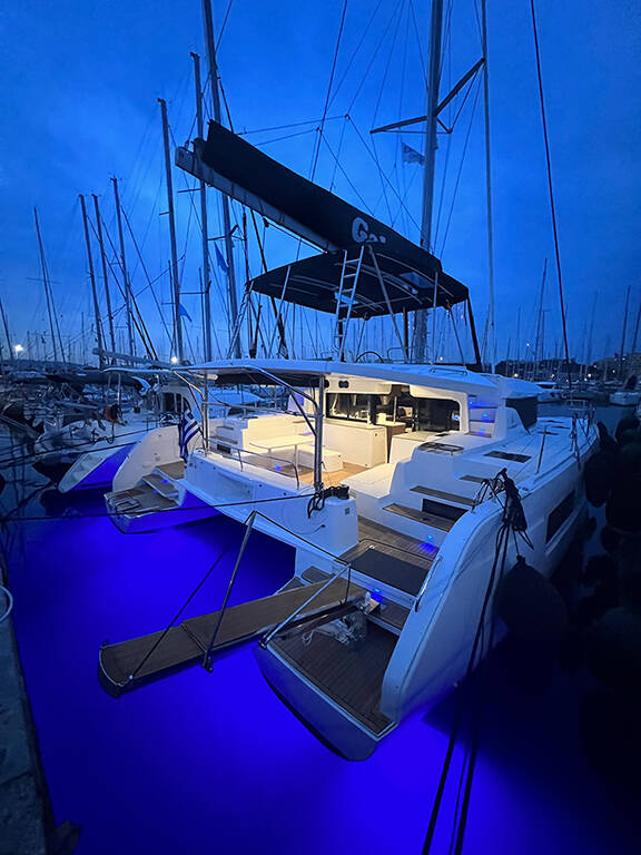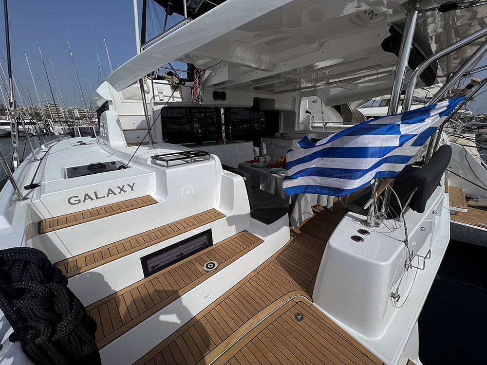 Catamaran Lagoon 46 Galaxy, built in 2022 is anchored in the Athens, Alimos marina, Athens area/Saronic/Peloponese, Greece. It has 4 + 2 cabins, can accommodate 8 + 2 people and has 4 + 1 toilets. Bed linen and kitchen equipment are included in the price.