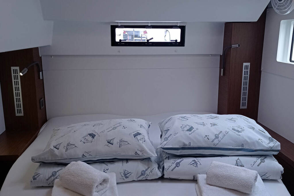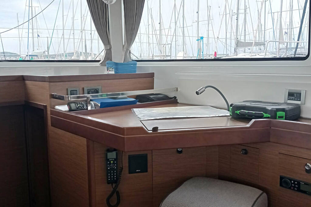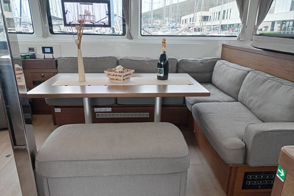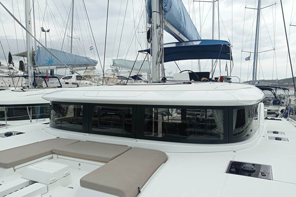 Catamaran Lagoon 46 Genie, built in 2020 is anchored in the Trogir, Yachtclub Seget (Marina Baotić), Split region, Croatia. It has 4 + 2 cabins, can accommodate 8 + 2 + 2 people and has 4 toilets. Bed linen and kitchen equipment are included in the price.