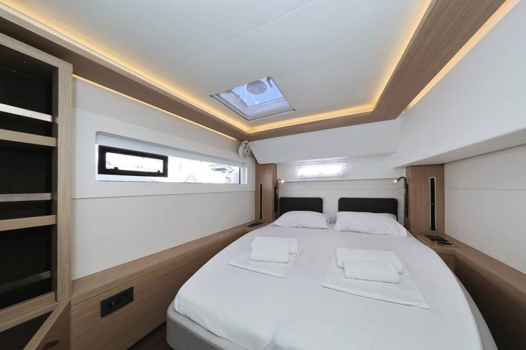Catamaran Lagoon 46 Hasta La Vista, built in 2023 is anchored in the Sukosan, D-Marin Dalmacija Marina, Zadar region, Croatia. It has 4 + 2 cabins, can accommodate 8 + 2 + 2 people and has 4 toilets. Bed linen and kitchen equipment are included in the price.