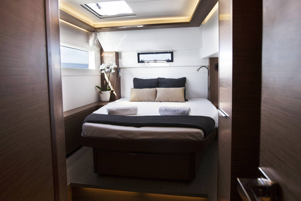 Catamaran Lagoon 46 Kaizen, built in 2020 is anchored in the Rhodes New Marina, Dodecanese, Greece. It has 4 + 2 cabins, can accommodate 8 + 2 + 2 people and has 5 toilets. Bed linen and kitchen equipment are included in the price.