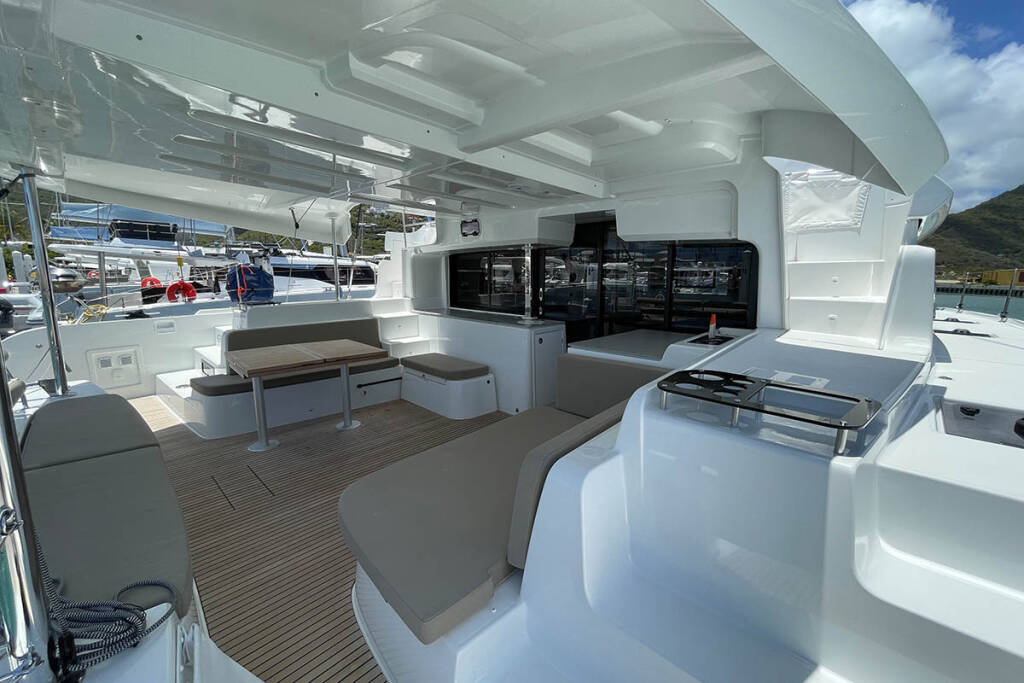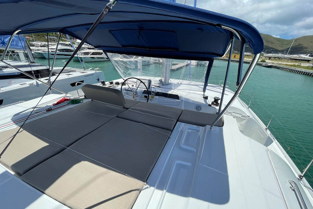 Catamaran Lagoon 46 Kerry Lee, built in 2022 is anchored in the St. Martin, Simpson Bay Marina, St. Martin, Caribbean. It has 4 + 2 cabins, can accommodate 8 + 2 people and has 4 toilets. Bed linen and kitchen equipment are included in the price.