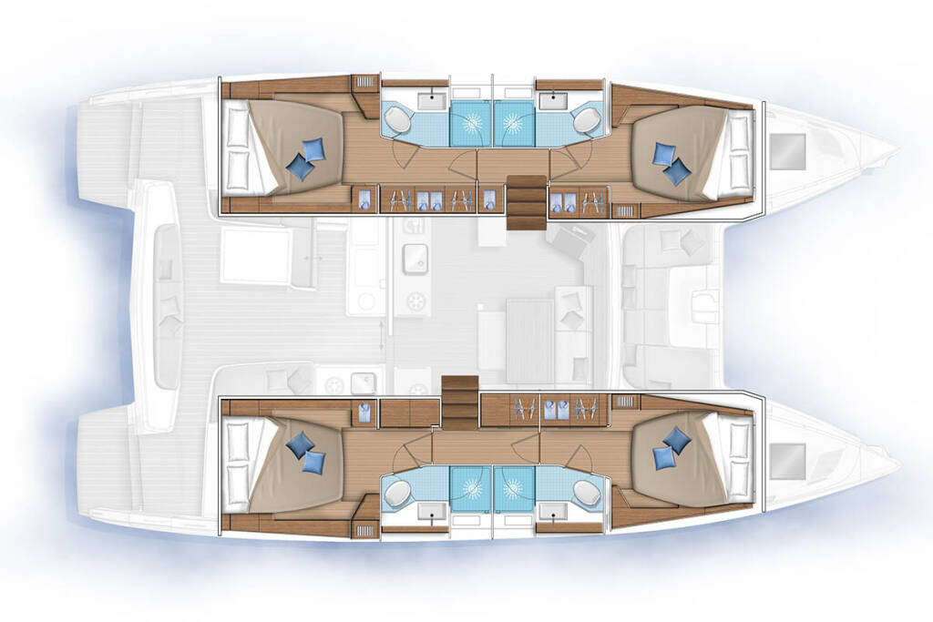 Catamaran Lagoon 46 Knot Working, built in 2024 is anchored in the BVI, Tortola, Nanny Cay Marina, British Virgin Islands, British Virgin Islands. It has 4 + 2 cabins, can accommodate 8 + 2 + 2 people and has 4 toilets. Bed linen and kitchen equipment are included in the price.