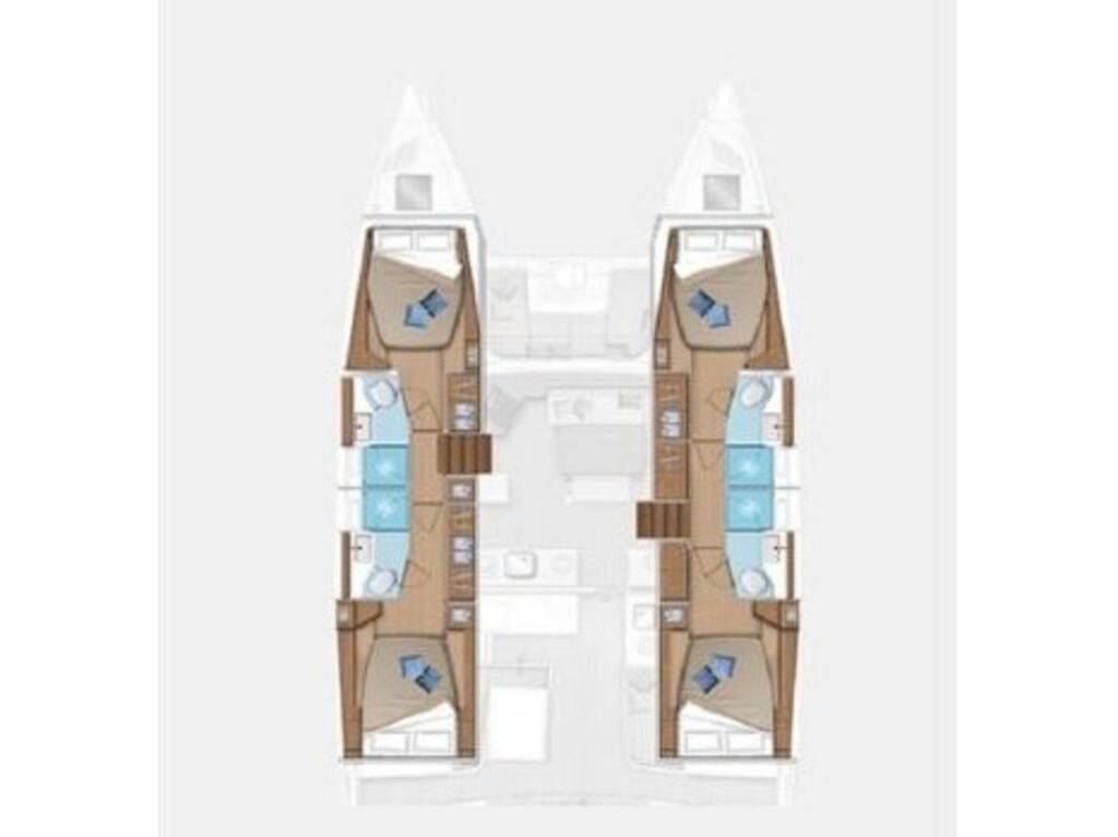 Catamaran Lagoon 46 Lady Point, built in 2020 is anchored in the ACI Marina Trogir, Split region, Croatia. It has 4 + 2 cabins, can accommodate 8 + 2 people and has 4 toilets. Bed linen and kitchen equipment are included in the price.