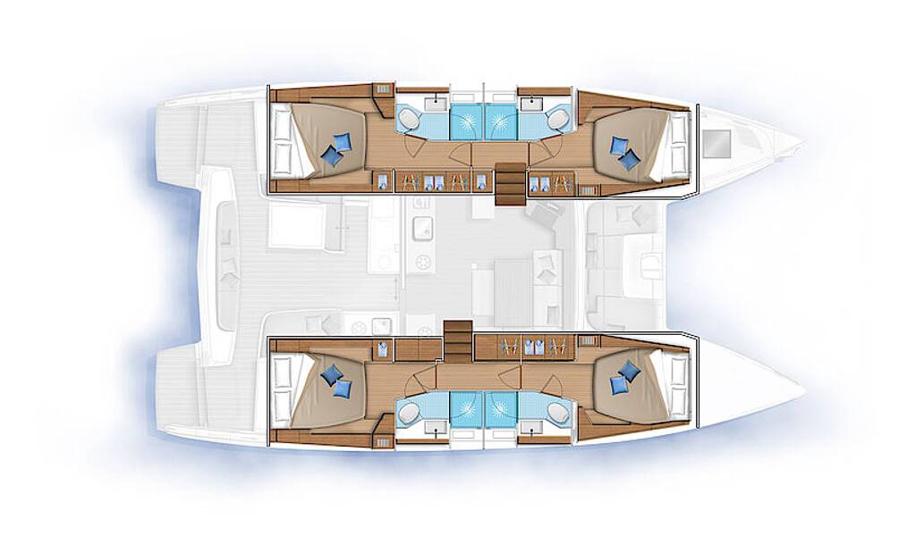 Catamaran Lagoon 46 Mira, built in 2023 is anchored in the Sukosan, D-Marin Dalmacija Marina, Zadar region, Croatia. It has 4 + 1 cabins, can accommodate 8 + 2 + 1 people and has 4 + 1 toilets. Bed linen and kitchen equipment are included in the price.