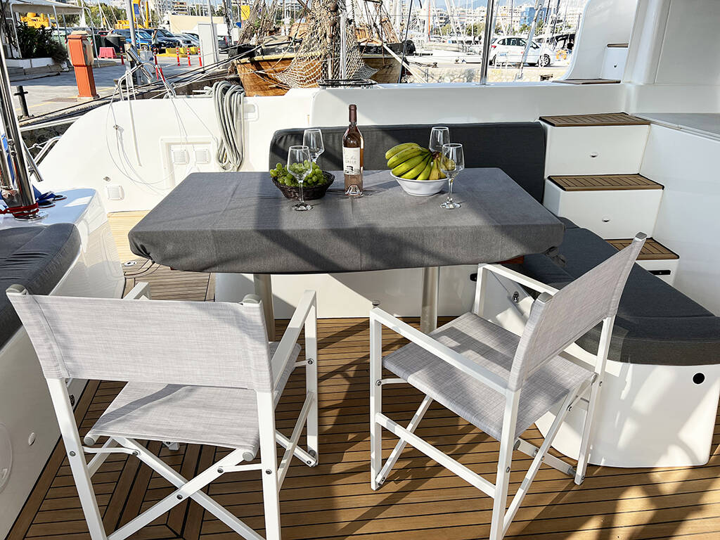 Catamaran Lagoon 46 Moondance, built in 2023 is anchored in the Athens, Alimos marina, Athens area/Saronic/Peloponese, Greece. It has 4 + 2 cabins, can accommodate 8 + 2 people and has 4 + 2 toilets. Bed linen and kitchen equipment are included in the price.