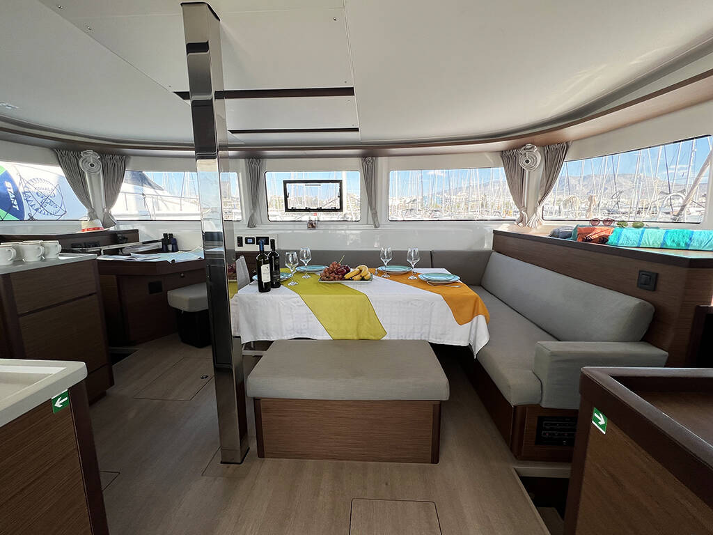 Catamaran Lagoon 46 Mple, built in 2022 is anchored in the Athens, Alimos marina, Athens area/Saronic/Peloponese, Greece. It has 4 + 2 cabins, can accommodate 8 + 2 people and has 4 + 1 toilets. Bed linen and kitchen equipment are included in the price.