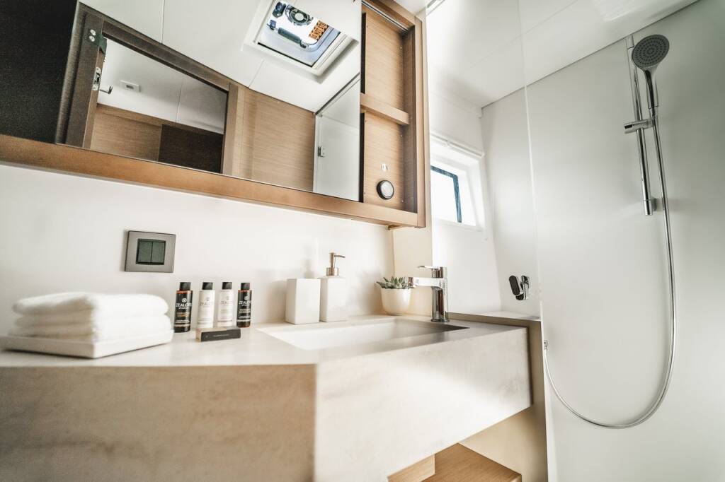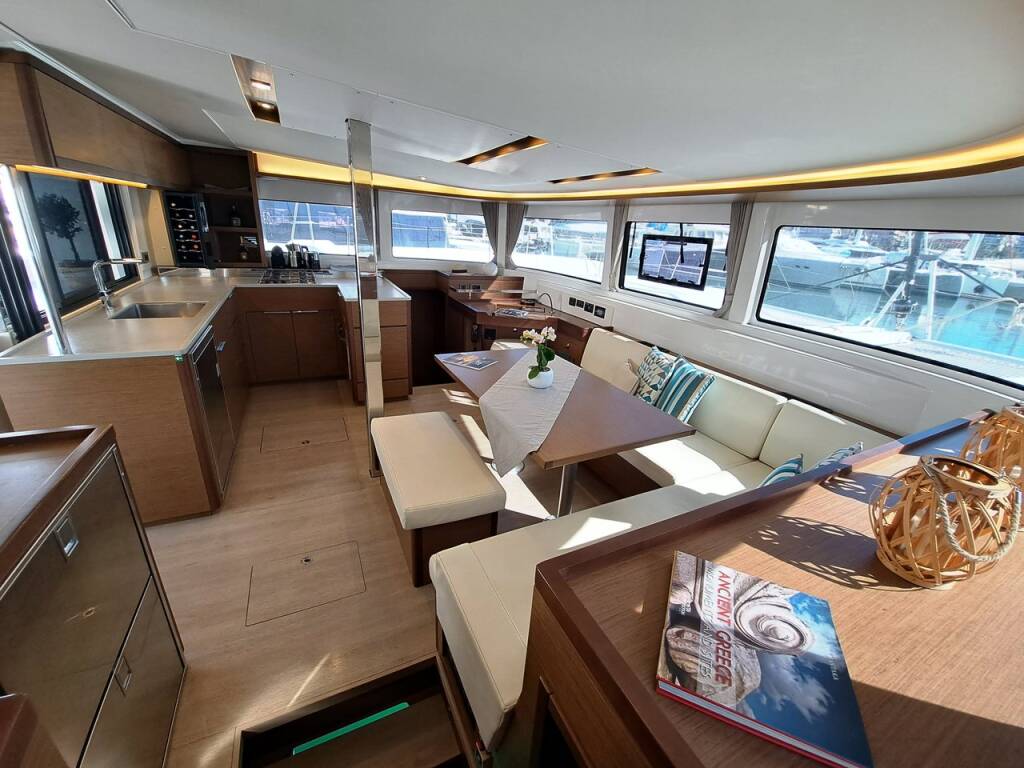 Catamaran Lagoon 46 Omnia, built in 2020 is anchored in the Athens, Zea Marina, Athens area/Saronic/Peloponese, Greece. It has 4 + 2 cabins, can accommodate 8 + 2 people and has 4 toilets. Bed linen and kitchen equipment are included in the price.