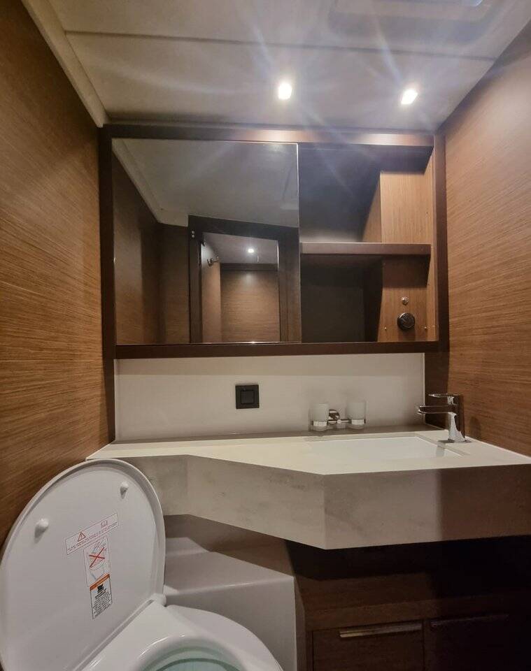 Catamaran Lagoon 46 OW Free Bird II, built in 2022 is anchored in the Lavrion - Olympic Marine, Athens area/Saronic/Peloponese, Greece. It has 3 + 2 cabins, can accommodate 6 + 2 people and has 3 + 1 toilets. Bed linen and kitchen equipment are included in the price.