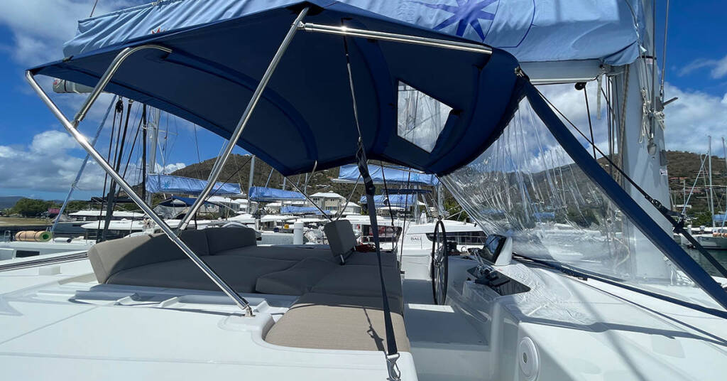 Catamaran Lagoon 46 Pebbles, built in 2023 is anchored in the BVI, Tortola, Nanny Cay Marina, British Virgin Islands, British Virgin Islands. It has 4 + 2 cabins, can accommodate 8 + 2 + 2 people and has 4 toilets. Bed linen and kitchen equipment are included in the price.