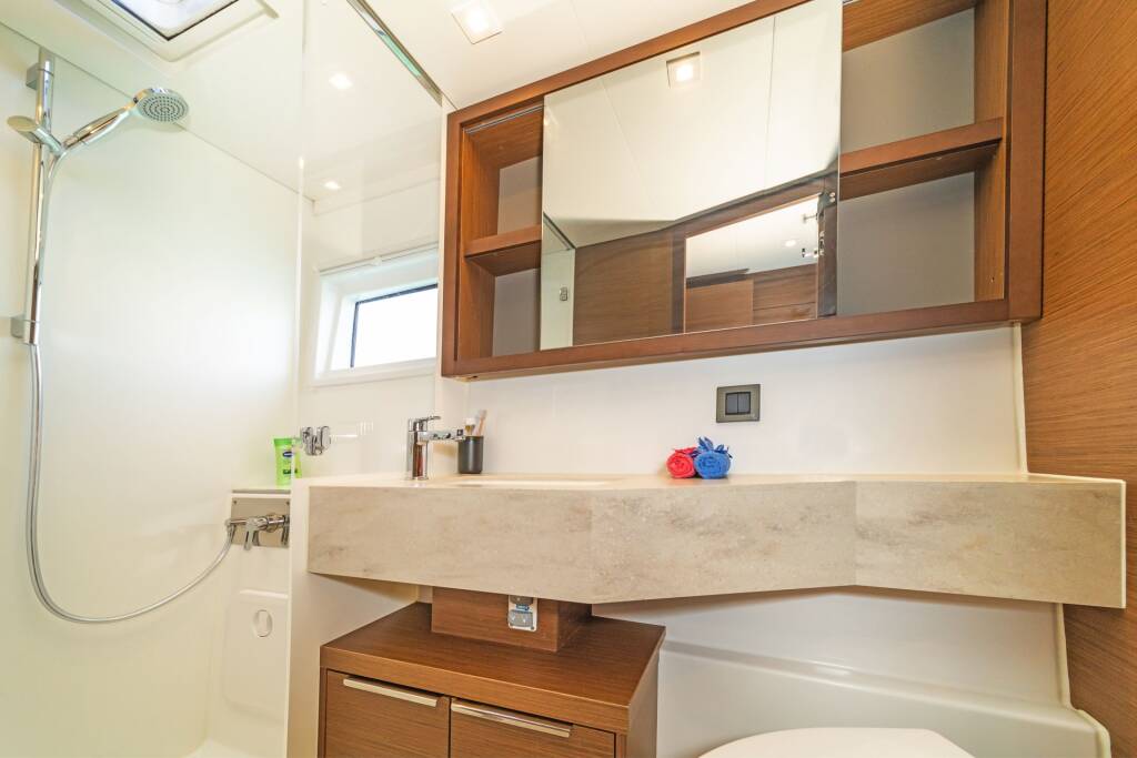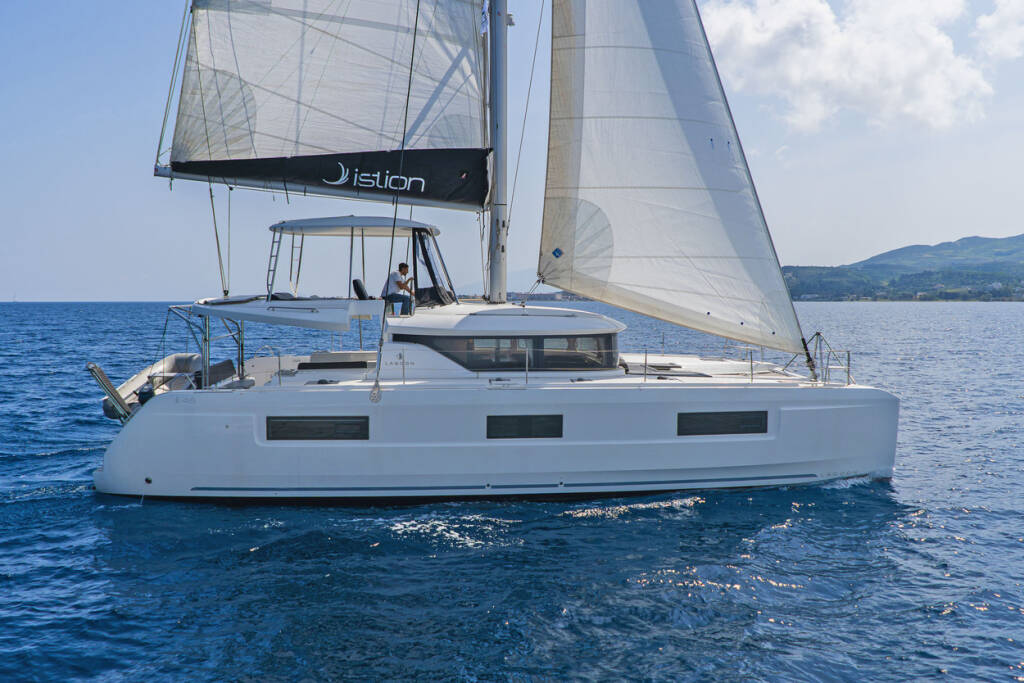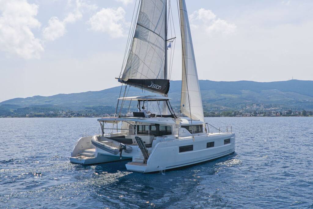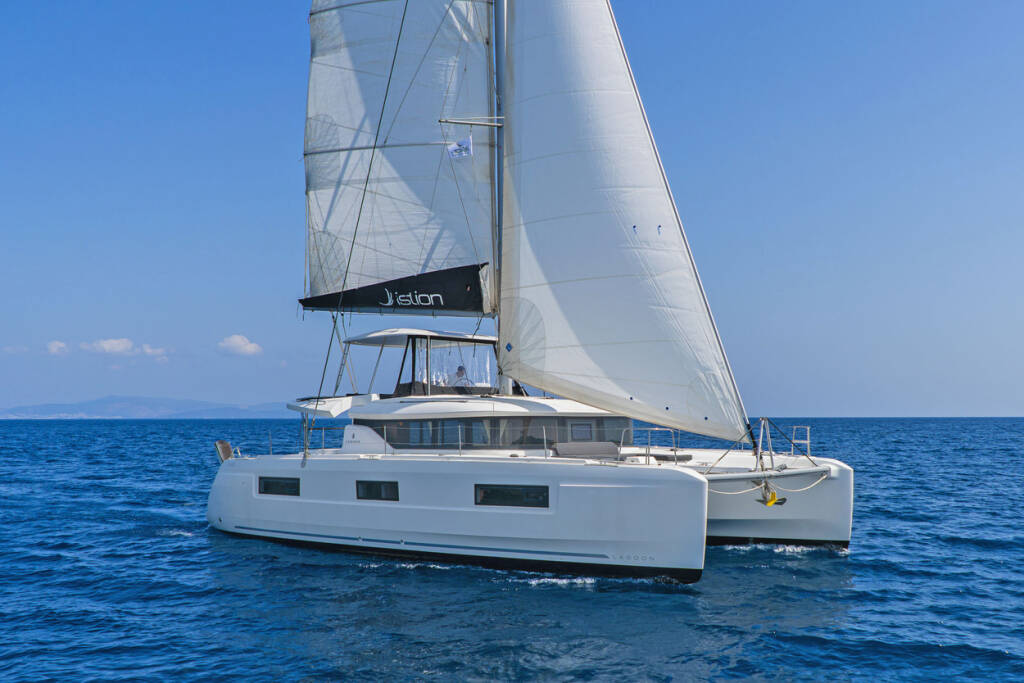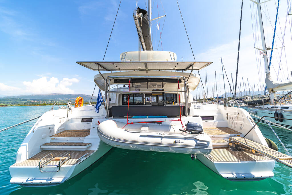 Catamaran Lagoon 46 Pnoe, built in 2021 is anchored in the Lefkas, D-Marin, Ionian Islands, Greece. It has 4 + 2 cabins, can accommodate 8 + 2 people and has 4 + 1 toilets. Bed linen and kitchen equipment are included in the price.