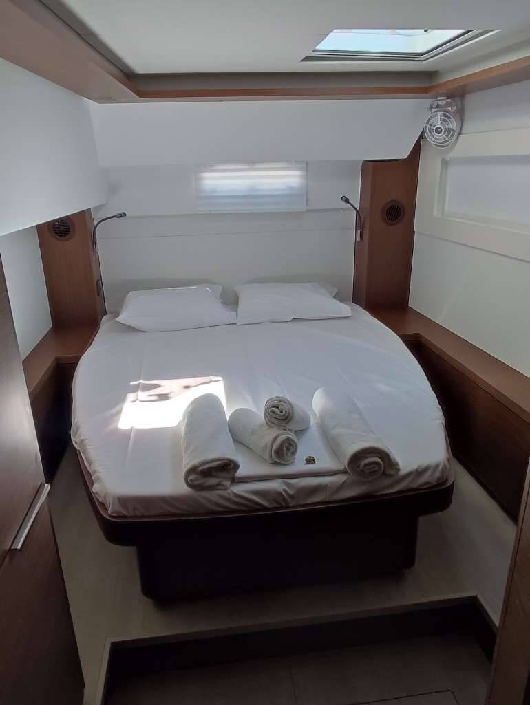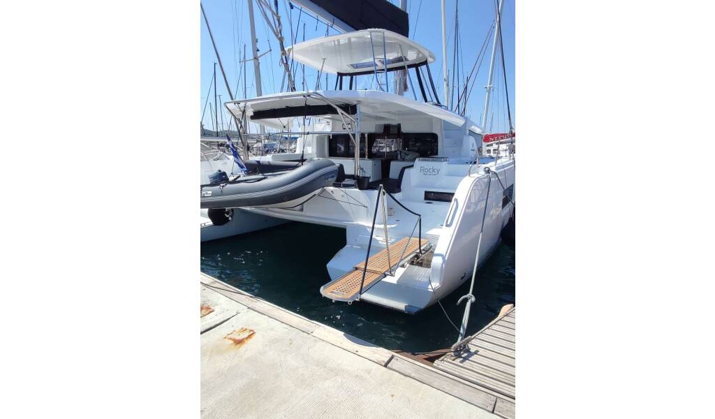 Catamaran Lagoon 46 Rocky, built in 2022 is anchored in the Lavrion - Olympic Marine, Athens area/Saronic/Peloponese, Greece. It has 4 + 2 cabins, can accommodate 8 + 2 + 2 people and has 4 + 1 toilets. Bed linen and kitchen equipment are included in the price.