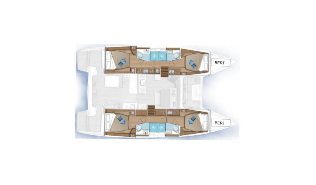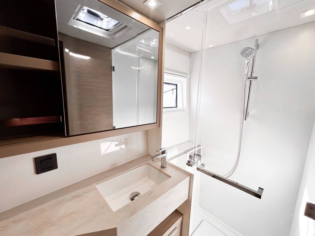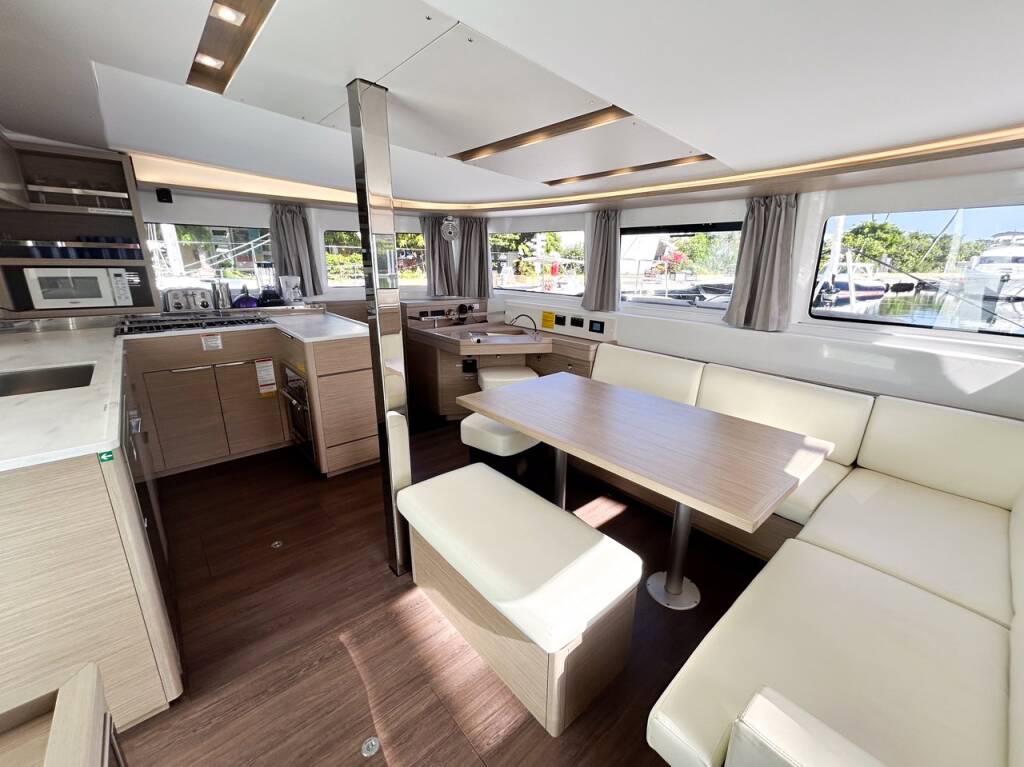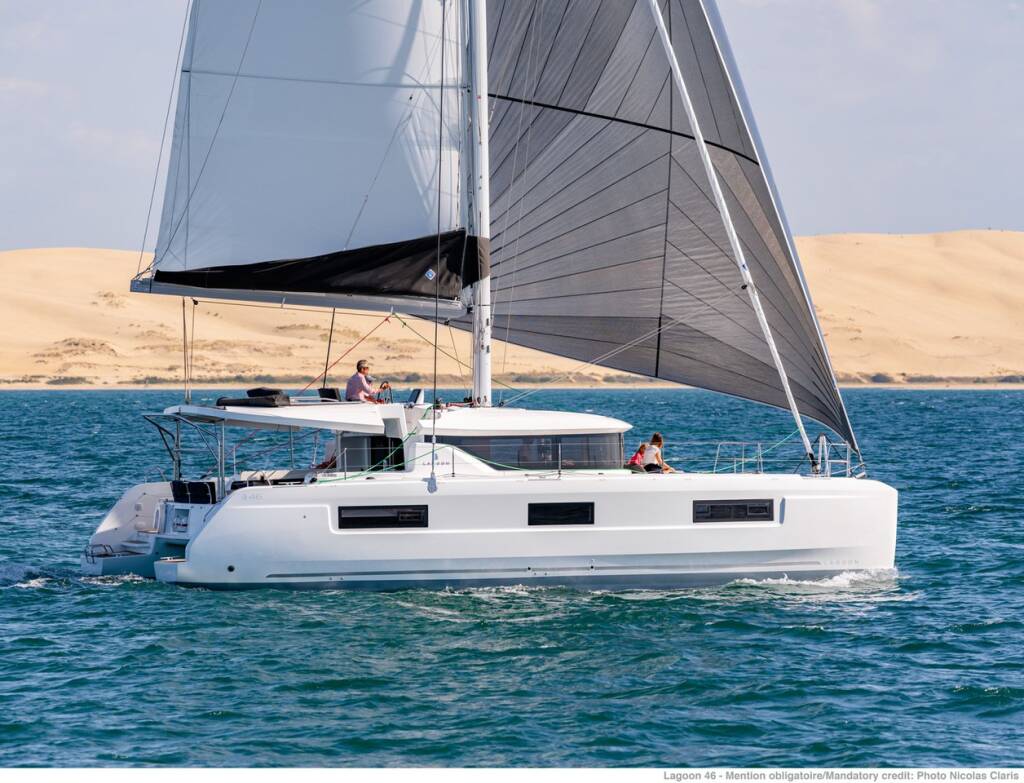 Catamaran Lagoon 46 Southern Isle, built in 2024 is anchored in the BVI, Tortola, Nanny Cay Marina, British Virgin Islands, British Virgin Islands. It has 4 + 1 cabins, can accommodate 8 + 1 people and has 5 toilets. Bed linen and kitchen equipment are included in the price.