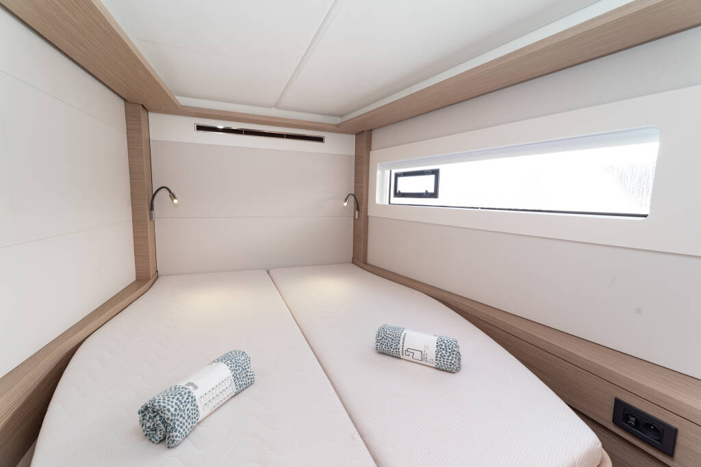 Catamaran Lagoon 46 Spezielli, built in 2024 is anchored in the Mallorca, Porto Colom, Balearic Islands, Spain. It has 4 + 2 cabins, can accommodate 8 + 2 + 2 people and has 4 toilets. Bed linen and kitchen equipment are included in the price.