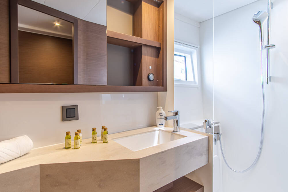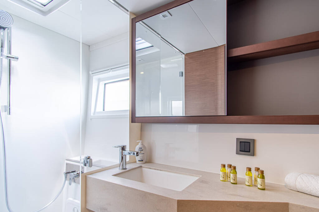 Catamaran Lagoon 46 Velvet Breeze, built in 2021 is anchored in the Marina Frapa, Rogoznica, Šibenik region, Croatia. It has 4 + 2 cabins, can accommodate 8 + 2 + 2 people and has 4 toilets. Bed linen and kitchen equipment are included in the price.