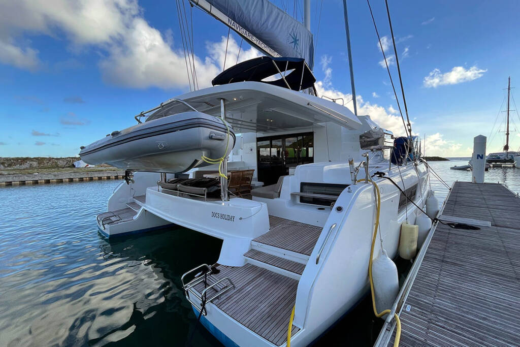 Catamaran Lagoon 50 CU Sailing (Docs Holiday), built in 2020 is anchored in the BVI, Tortola, Nanny Cay Marina, British Virgin Islands, British Virgin Islands. It has 6 + 2 cabins, can accommodate 12 + 2 people and has 4 toilets. Bed linen and kitchen equipment are included in the price.