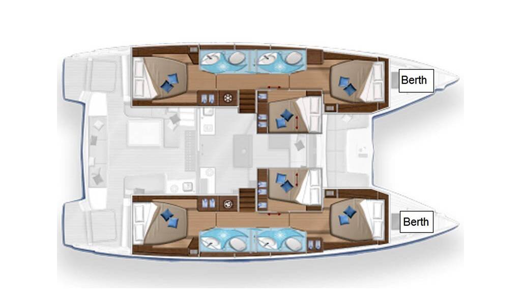 Catamaran Lagoon 50 Jays 'n Seas, built in 2023 is anchored in the BVI, Tortola, Nanny Cay Marina, British Virgin Islands, British Virgin Islands. It has 6 + 2 cabins, can accommodate 12 + 2 people and has 4 toilets. Bed linen and kitchen equipment are included in the price.