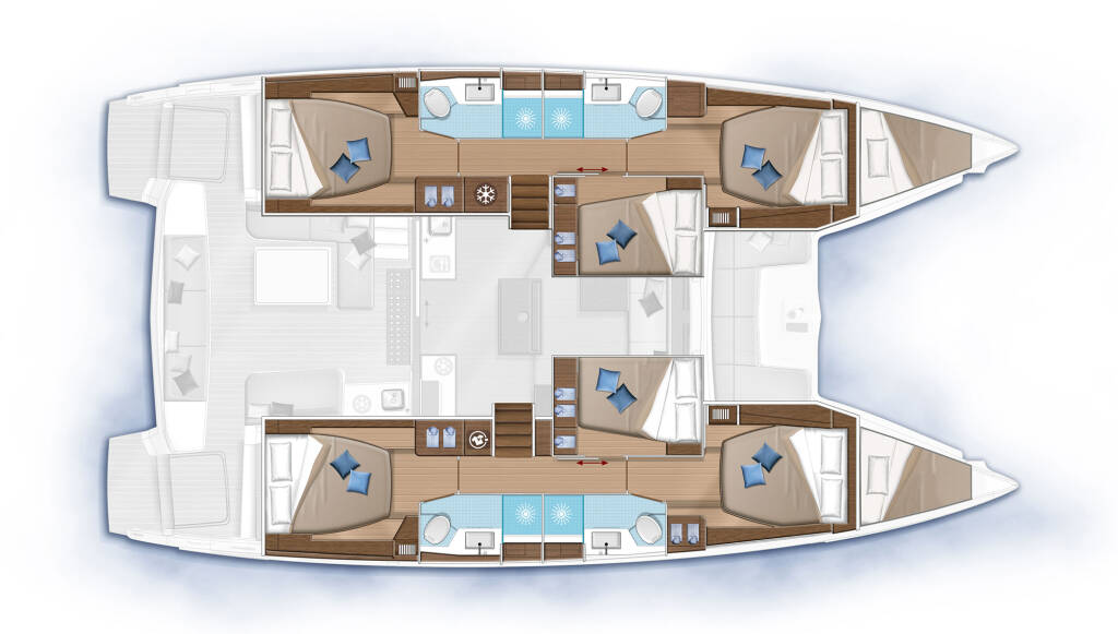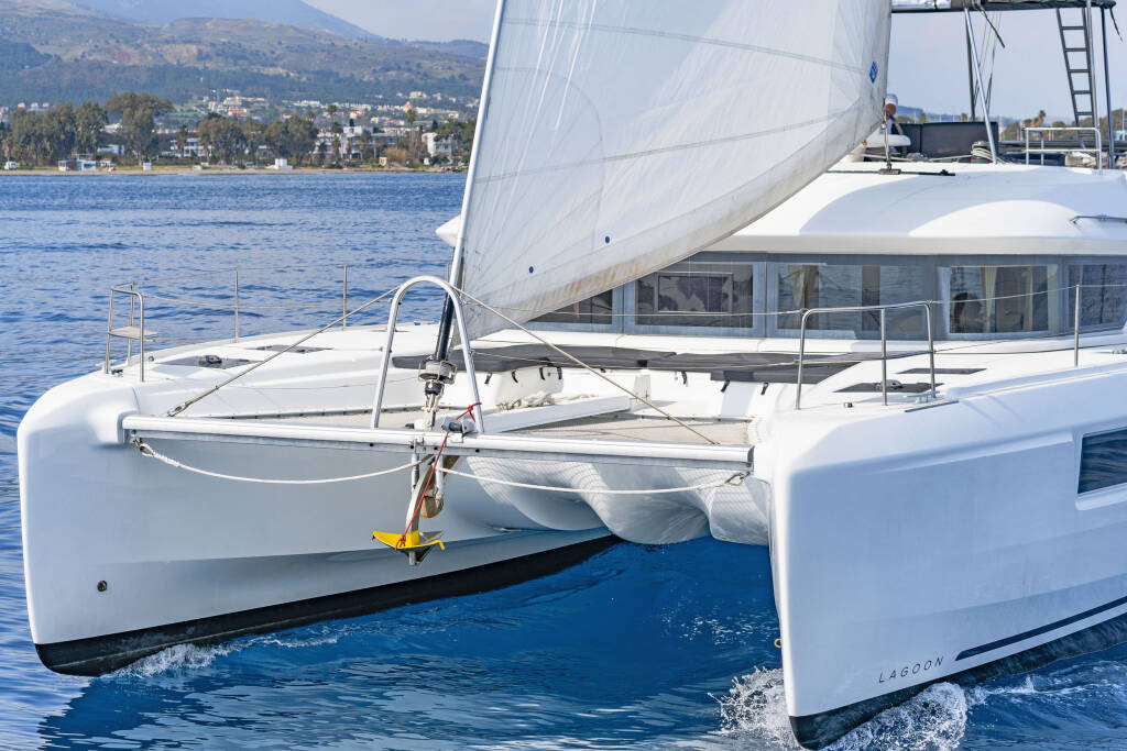 Catamaran Lagoon 50 Just Infinity, built in 2021 is anchored in the Corfu, Gouvia Marina, Ionian Islands, Greece. It has 6 + 2 cabins, can accommodate 10 + 2 people and has 4 + 1 toilets. Bed linen and kitchen equipment are included in the price.