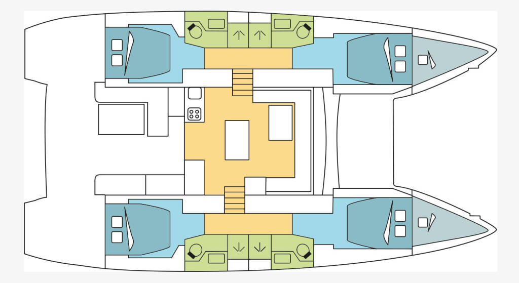 Catamaran Lagoon 50 KOKOMO, built in 2019 is anchored in the Whitsundays, Airlie Beach, Coral Sea Marina, Whitsunday Region of Queensland, Australia and Oceania. It has 4 + 2 cabins, can accommodate 8 + 2 people and has 4 toilets. Bed linen and kitchen equipment are included in the price.