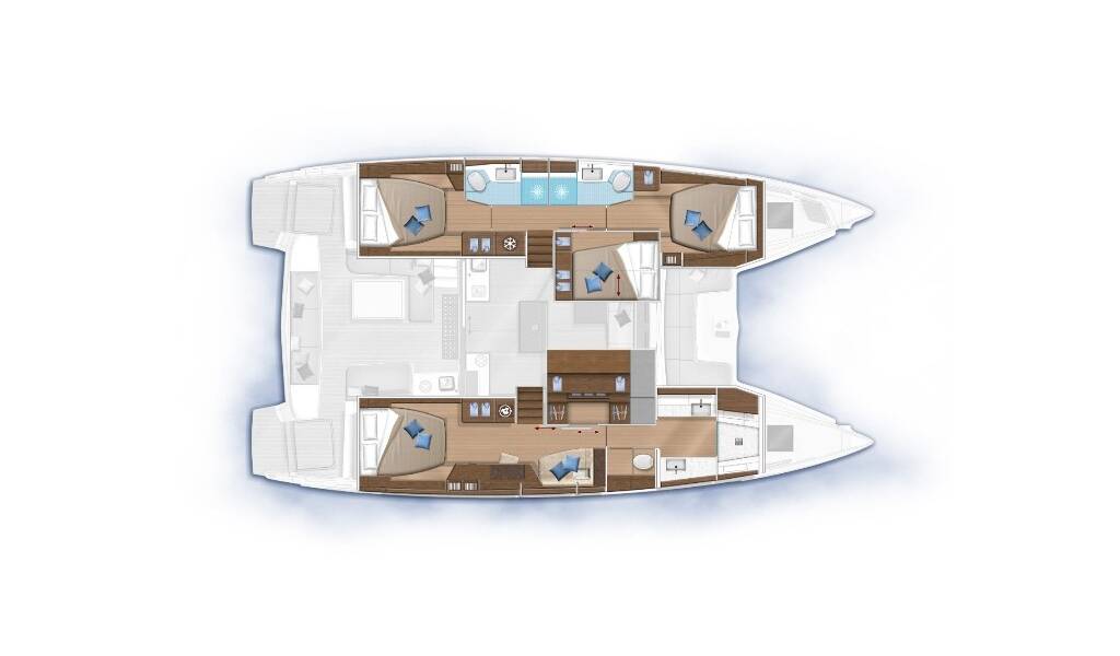 Catamaran Lagoon 50 OW Ragnar, built in 2021 is anchored in the Sukosan, D-Marin Dalmacija Marina, Zadar region, Croatia. It has 4 + 1 cabins, can accommodate 8 + 1 people and has 3 toilets. Bed linen and kitchen equipment are included in the price.