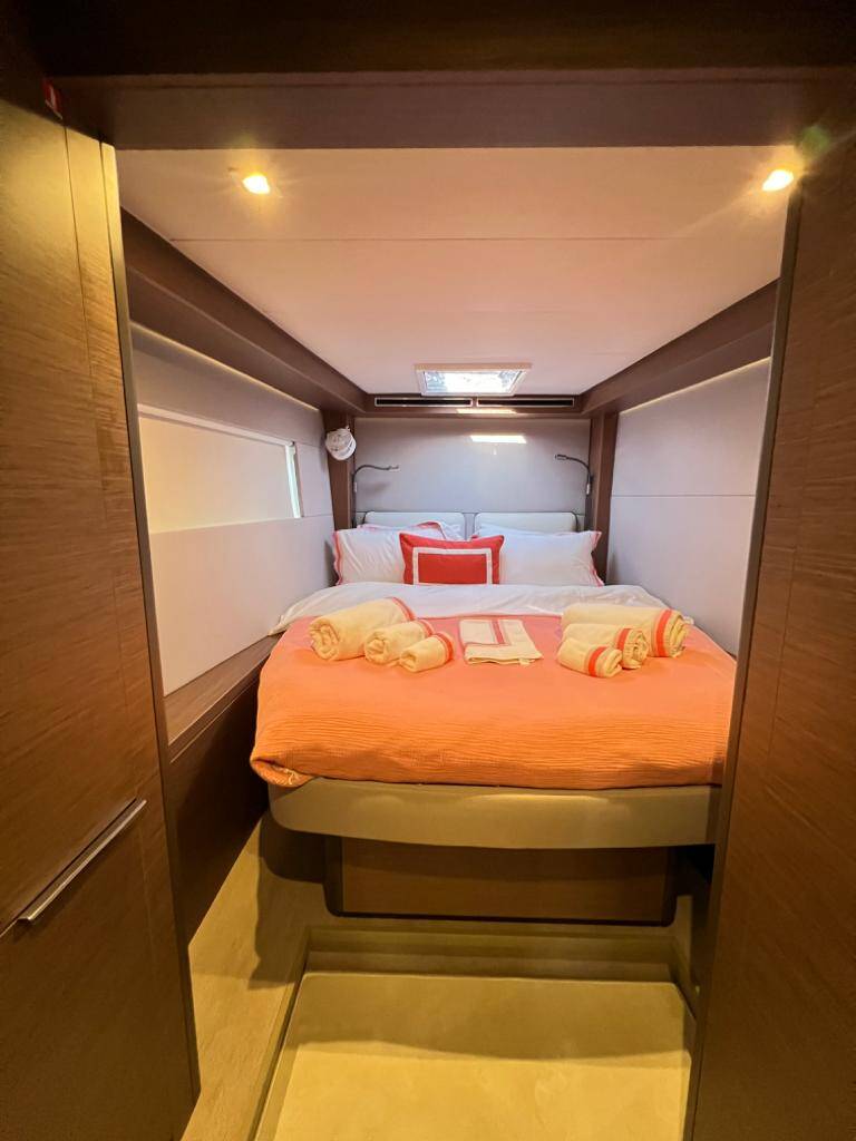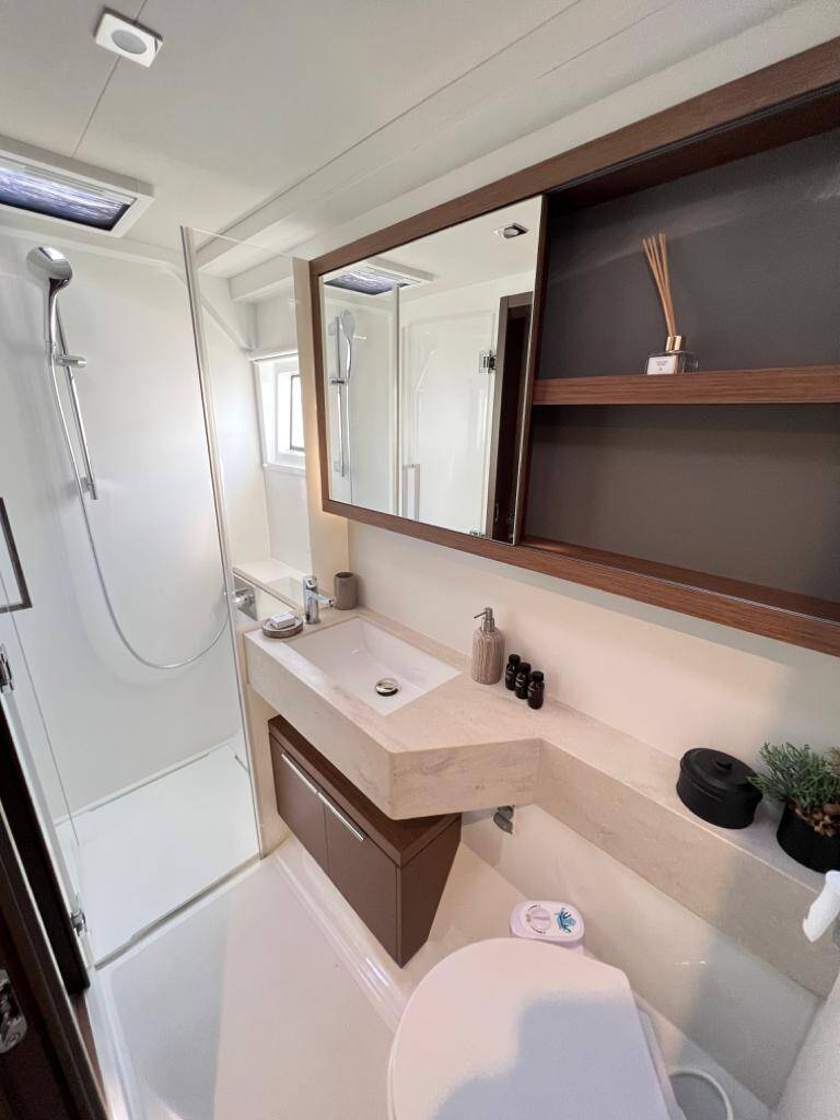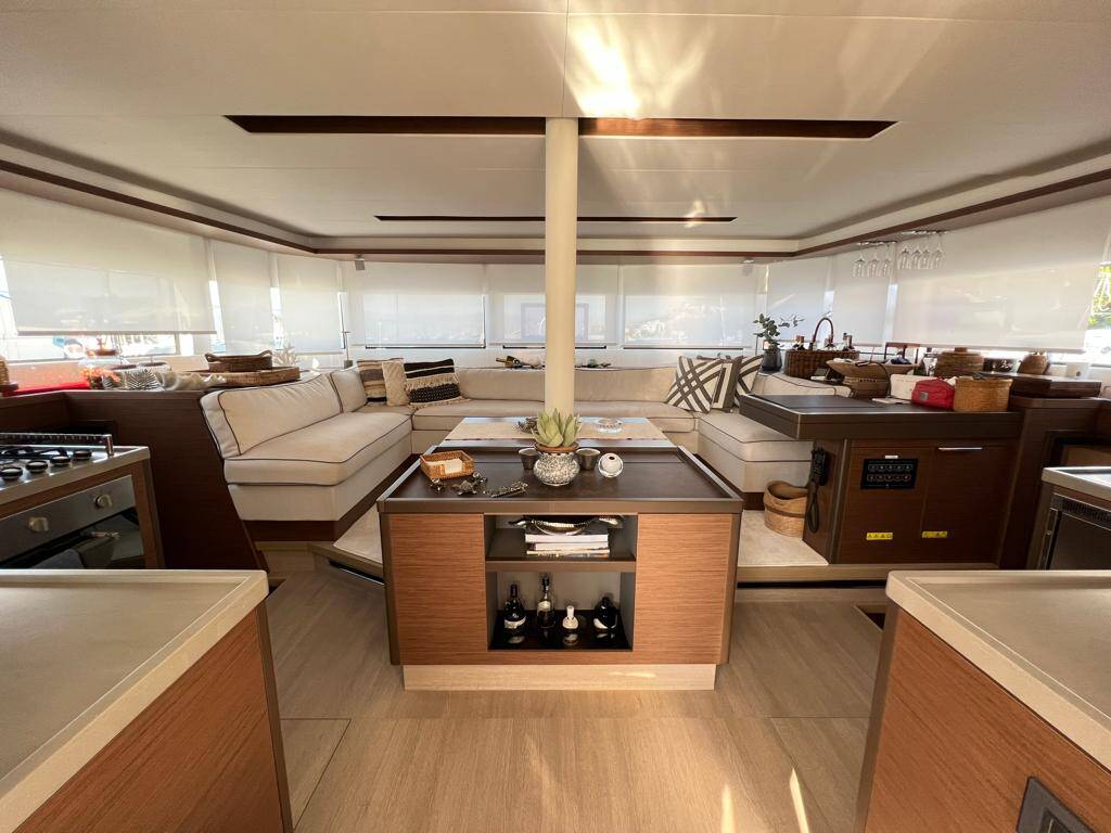 Catamaran Lagoon 50 OW Swice, built in 2022 is anchored in the Fethiye, Yacht Club Mai, Aegean, Turkey. It has 4 + 1 cabins, can accommodate 8 + 1 people and has 5 toilets. Bed linen and kitchen equipment are included in the price.