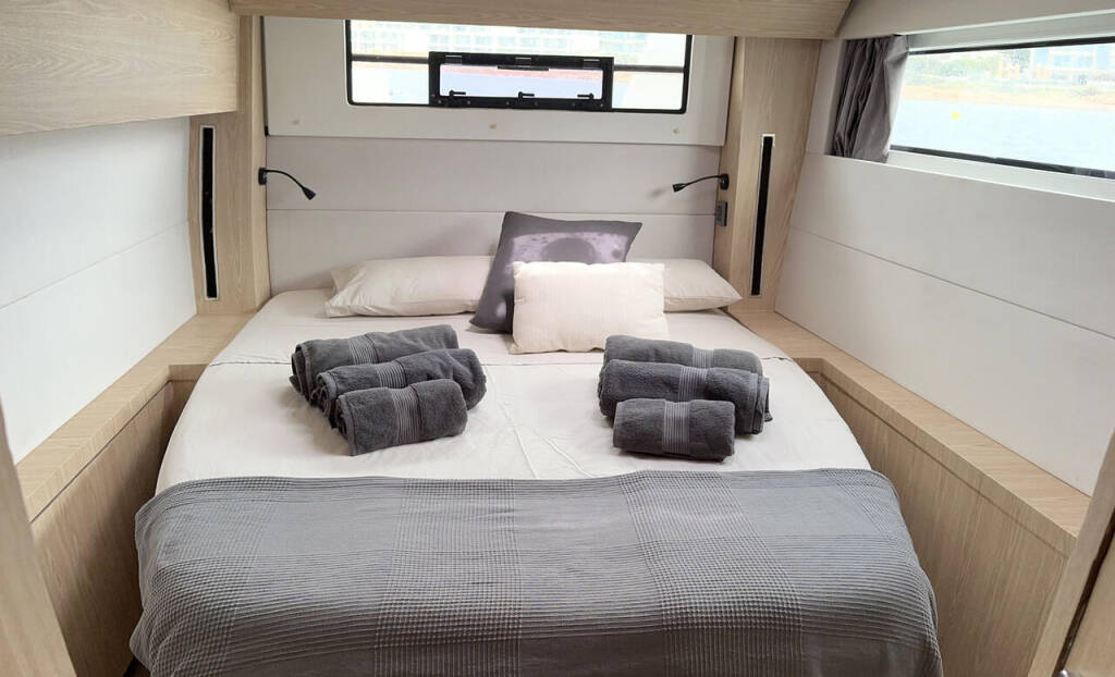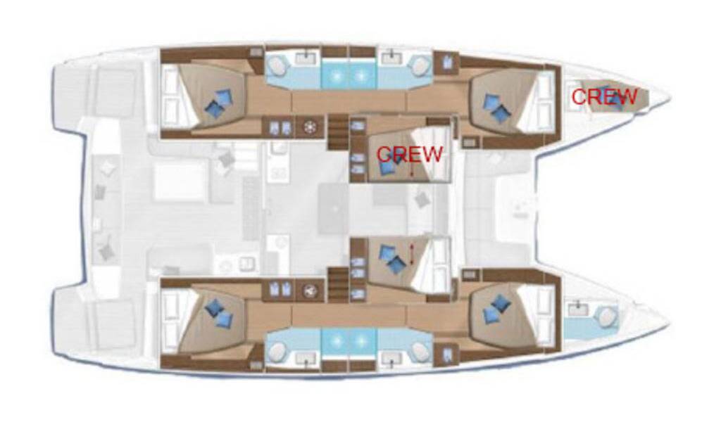 Catamaran Lagoon 50 Patagonia, built in 2018 is anchored in the Ibiza, Balearic Islands, Spain. It has 5 + 2 cabins, can accommodate 10 + 2 people and has 4 toilets. Bed linen and kitchen equipment are included in the price.