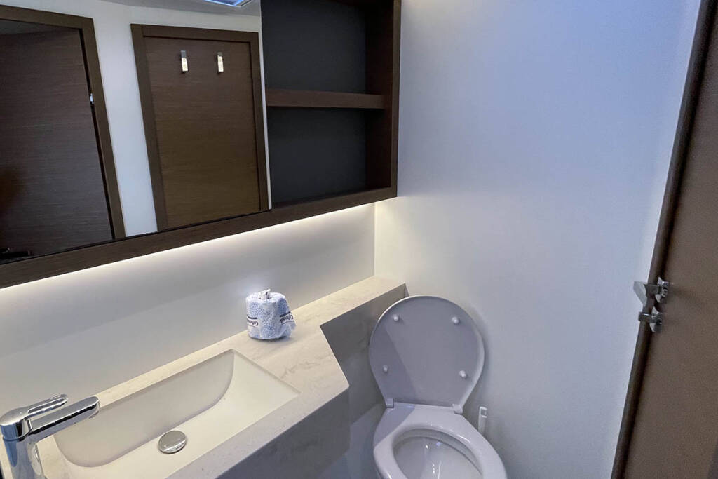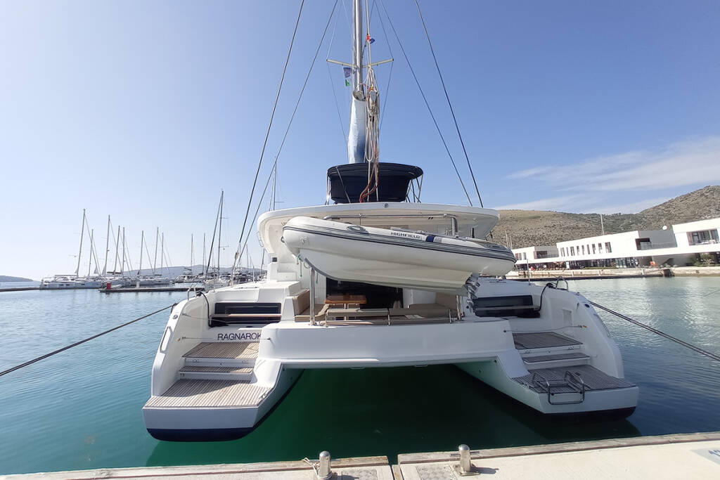 Catamaran Lagoon 50 Ragnarök, built in 2020 is anchored in the Trogir, Yachtclub Seget (Marina Baotić), Split region, Croatia. It has 6 + 2 cabins, can accommodate 12 + 2 people and has 4 toilets. Bed linen and kitchen equipment are included in the price.