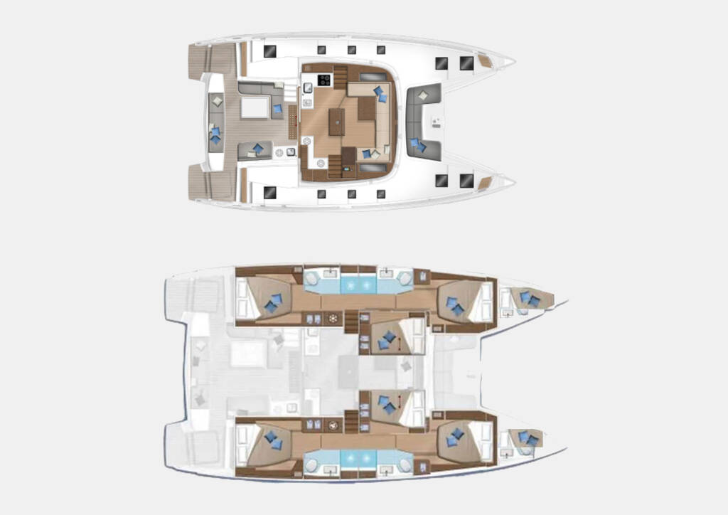 Catamaran Lagoon 50 Silhouette, built in 2022 is anchored in the Athens, Alimos marina, Athens area/Saronic/Peloponese, Greece. It has 6 + 2 cabins, can accommodate 12 people and has 4 + 2 toilets. Bed linen and kitchen equipment are included in the price.