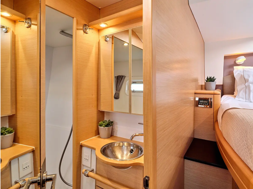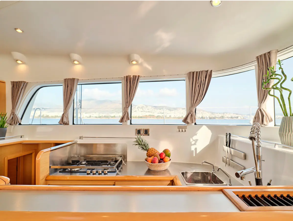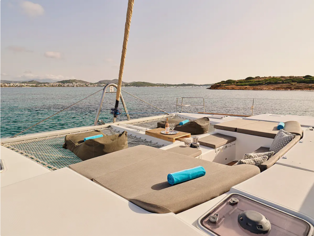 Catamaran Lagoon 50 Sophia, built in 2020 is anchored in the Athens, Alimos marina, Athens area/Saronic/Peloponese, Greece. It has 6 + 1 cabins, can accommodate 12 + 1 people and has 5 toilets. Bed linen and kitchen equipment are included in the price.