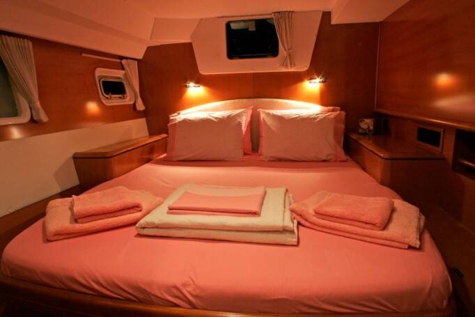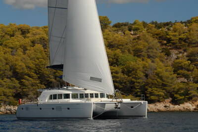 Catamaran Lagoon 500 Lepanto, built in 2008 is anchored in the Lavrion, main port, Athens area/Saronic/Peloponese, Greece. It has 5 + 1 cabins, can accommodate 10 + 2 people and has 6 toilets. Bed linen and kitchen equipment are included in the price.