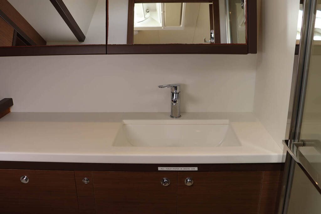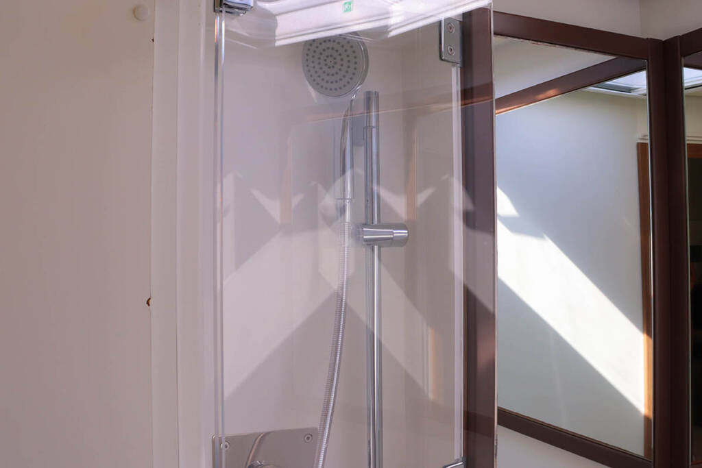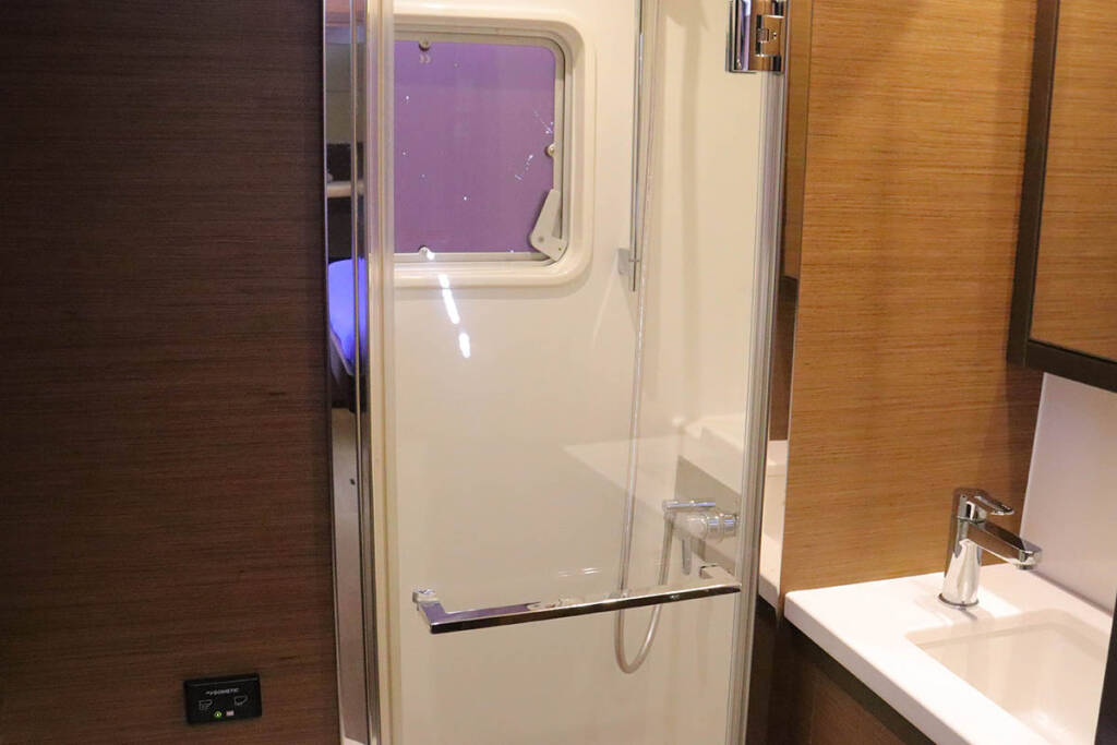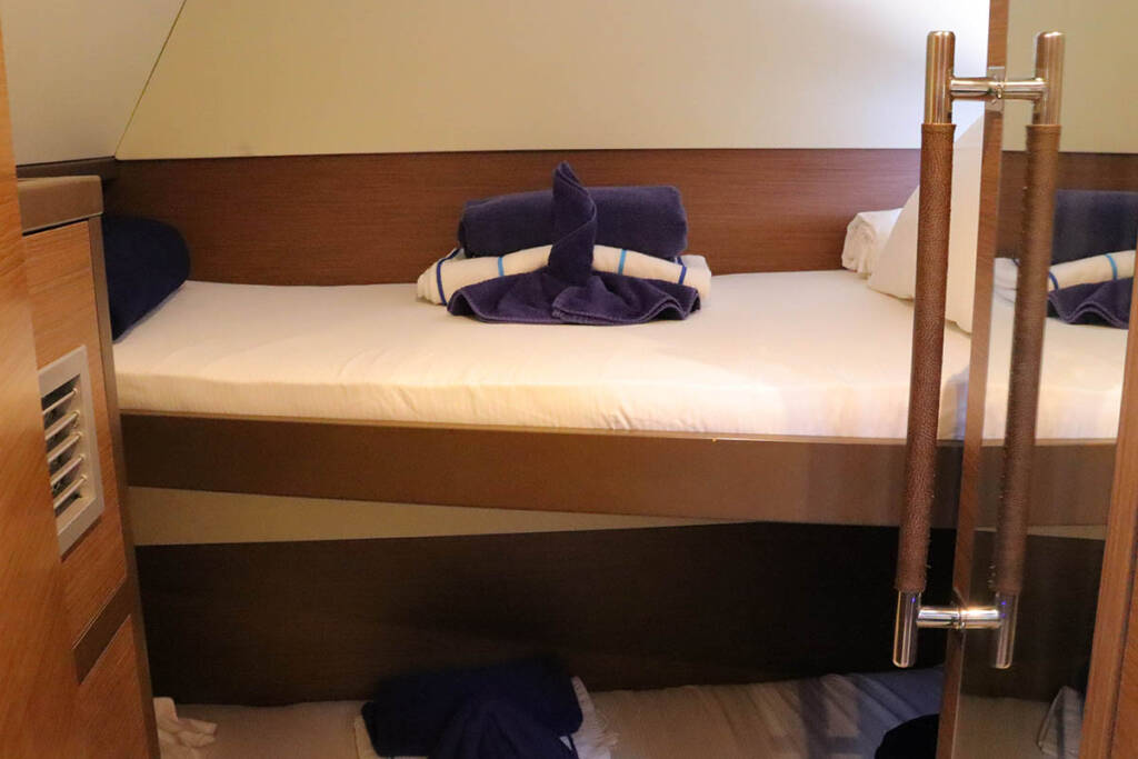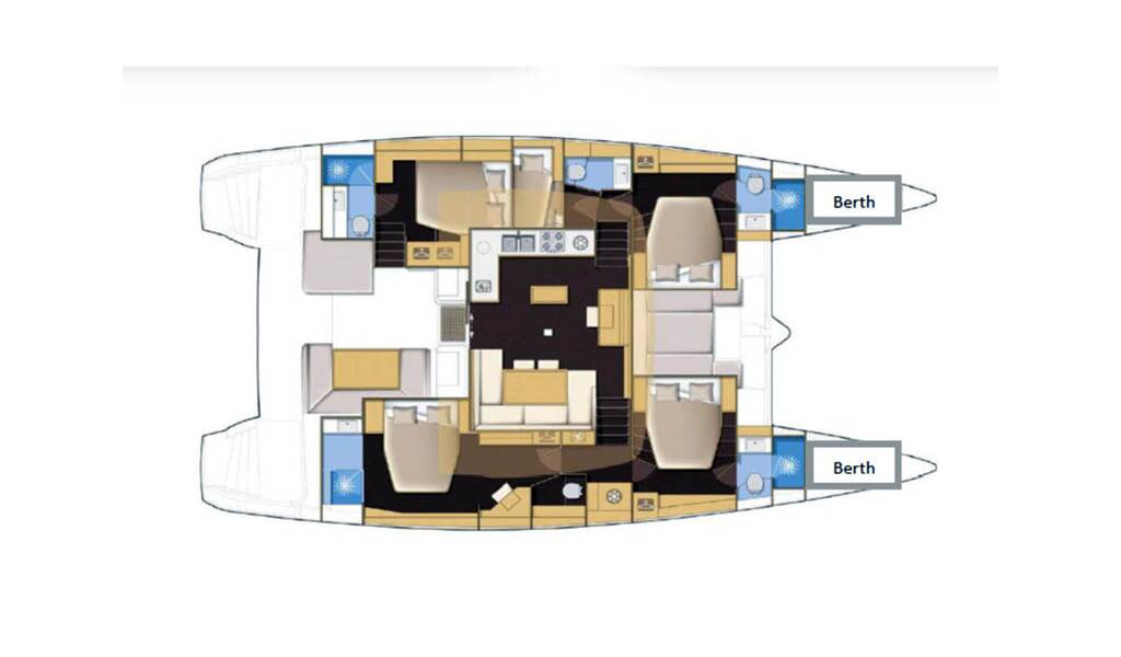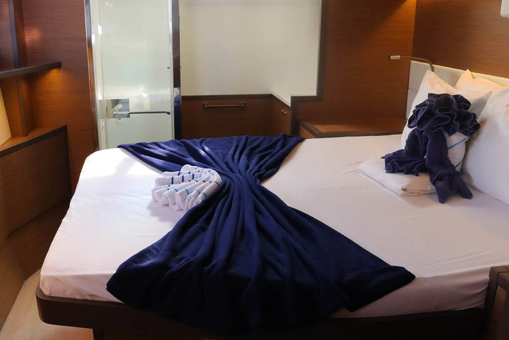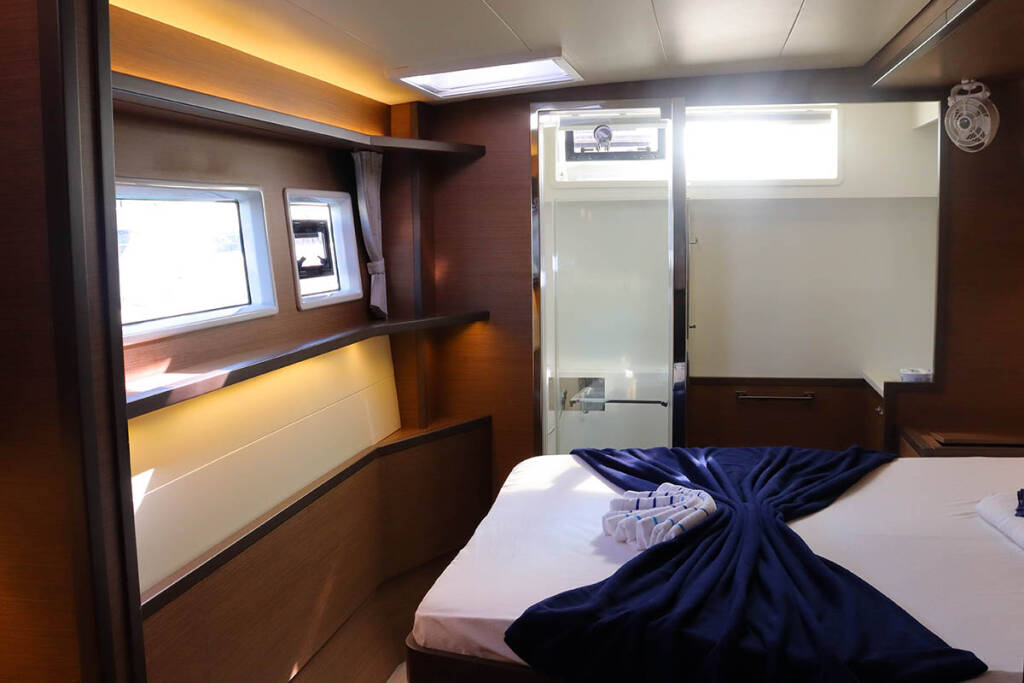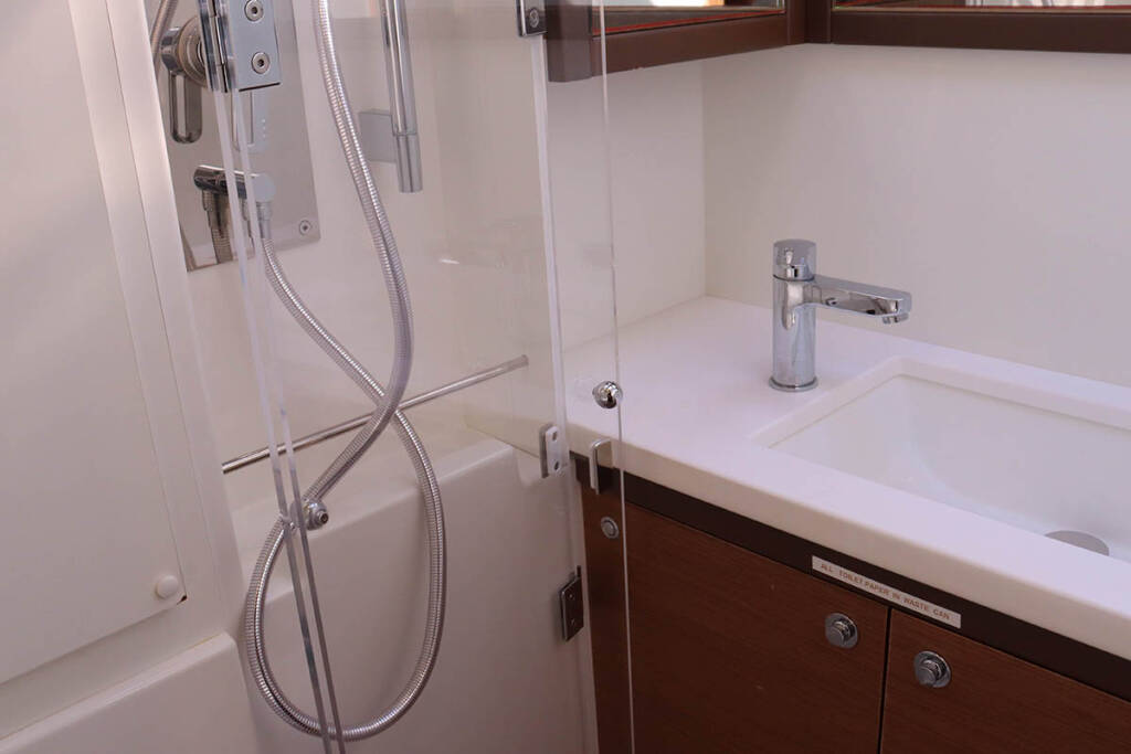 +provisioning ; Crew on board must have their own toilets/ showers. If either a skipper or a hostess/cook is on board, 1 double cabin will be required for him/her. If both a skipper and a hostess/cook are on board, 1 double cabin and 1 forepeak cabin will be required for them. Exceptions exists for specific layouts, Sales Agents will provide more details about the different boat models.