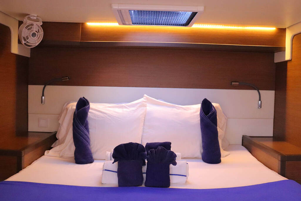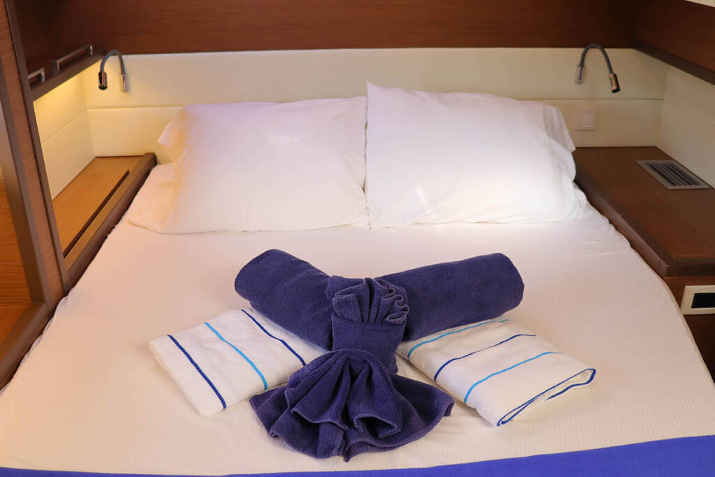 INCLUDED: Welcome pack // final cleaning // 1 set of bed sheets / cabin & 1 set of towels / pax, dinghy, outboard engine & initial supply of fuel, gas and water tanks // 1st & last night in the marina // NOT INCLUDED: refuelling, gas & water consumption at end of charter, taxes if any, handling fees & additional equipment deposit. - Payable now