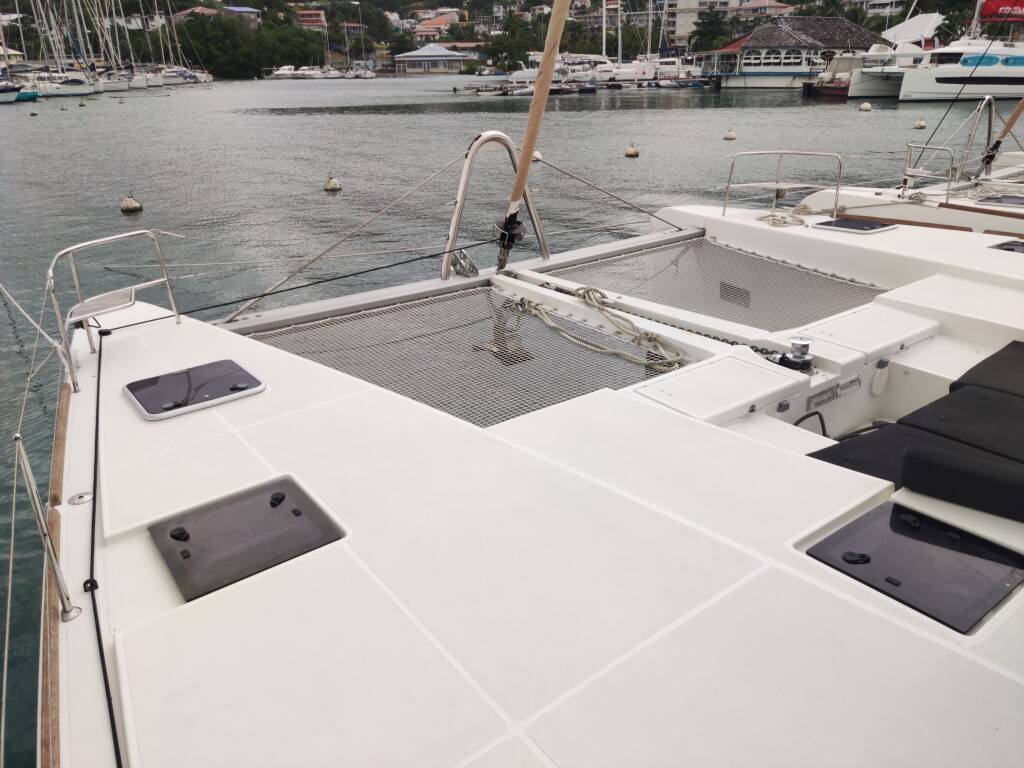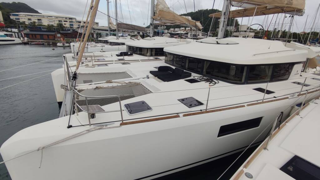 Catamaran Lagoon 52 F KETOUPA, built in 2020 is anchored in the Martinique, Le Marin, Martinique, Caribbean. It has 6 + 2 cabins, can accommodate 12 + 2 people and has 6 toilets. Bed linen and kitchen equipment are included in the price.