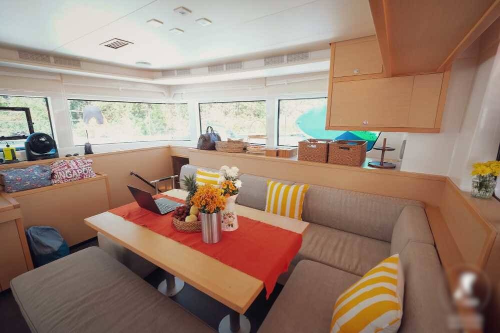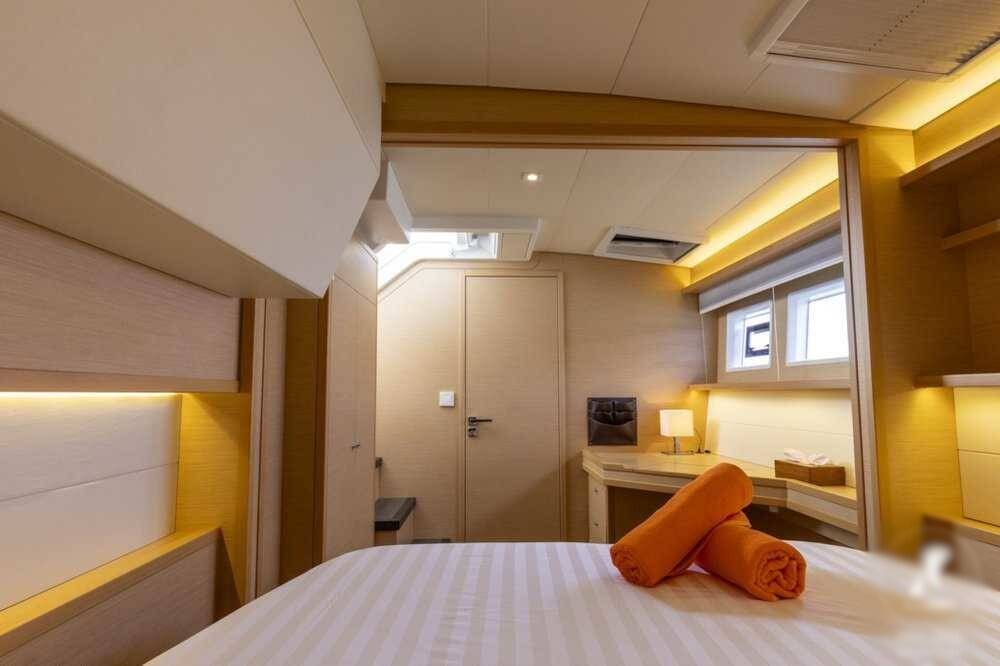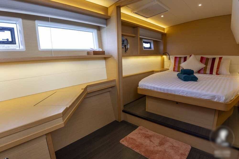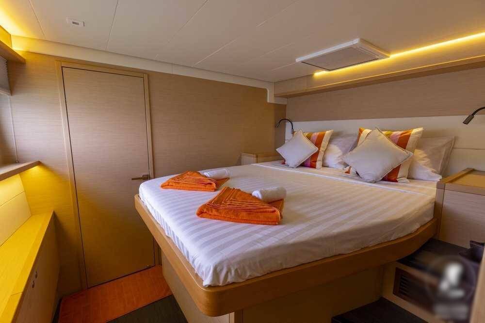 Catamaran Lagoon 52 F Sealion, built in 2018 is anchored in the Phuket, Yacht Haven Marina, Phuket, Thailand . It has 4 + 1 cabins, can accommodate 8 + 2 people and has 4 + 1 toilets. Bed linen and kitchen equipment are included in the price.
