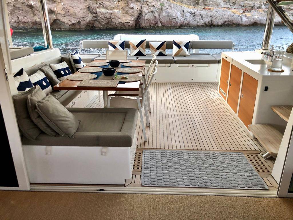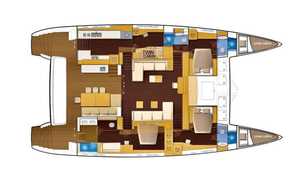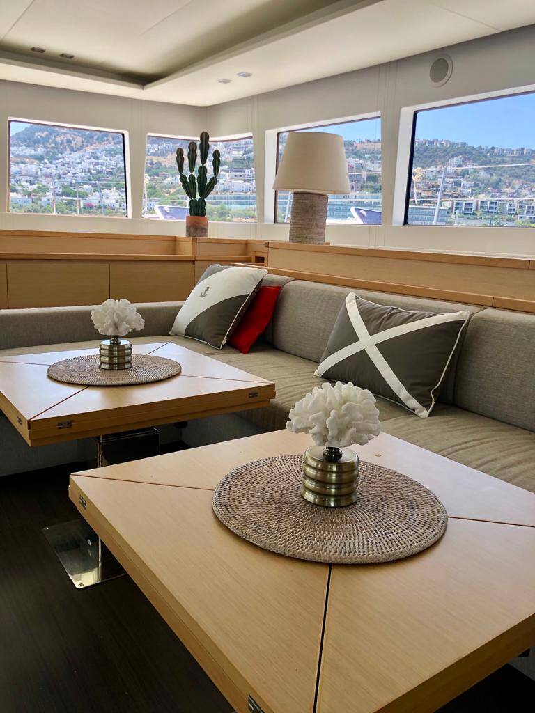 Catamaran Lagoon 620 Camaron, built in 2014 is anchored in the Bodrum, Milta Marina, Aegean, Turkey. It has 4 + 2 cabins, can accommodate 8 + 2 people and has 4 toilets. Bed linen and kitchen equipment are included in the price.