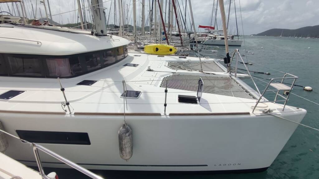 Catamaran Lagoon 620 DREAM GUADELOUPE II, built in 2019 is anchored in the Martinique, Le Marin, Martinique, Caribbean. It has 6 + 2 cabins, can accommodate 12 + 2 people and has 6 + 2 toilets. Bed linen and kitchen equipment are included in the price.