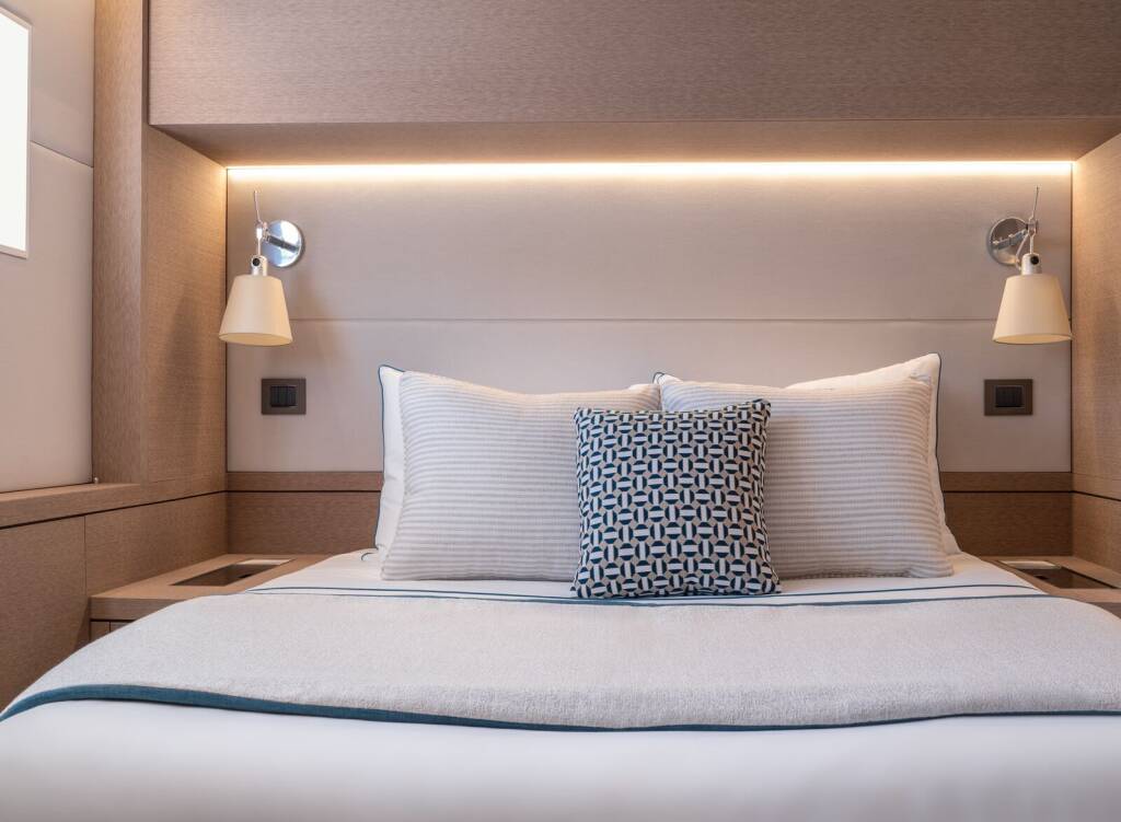 Luxury catamaran Lagoon Seventy 7 Spirit of Ponant, built in 2024 is anchored in the Seychelles, Mahe, Mahé, Seychelles. It has 6 cabins, can accommodate 12 people and has 6 toilets. Bed linen and kitchen equipment are included in the price.