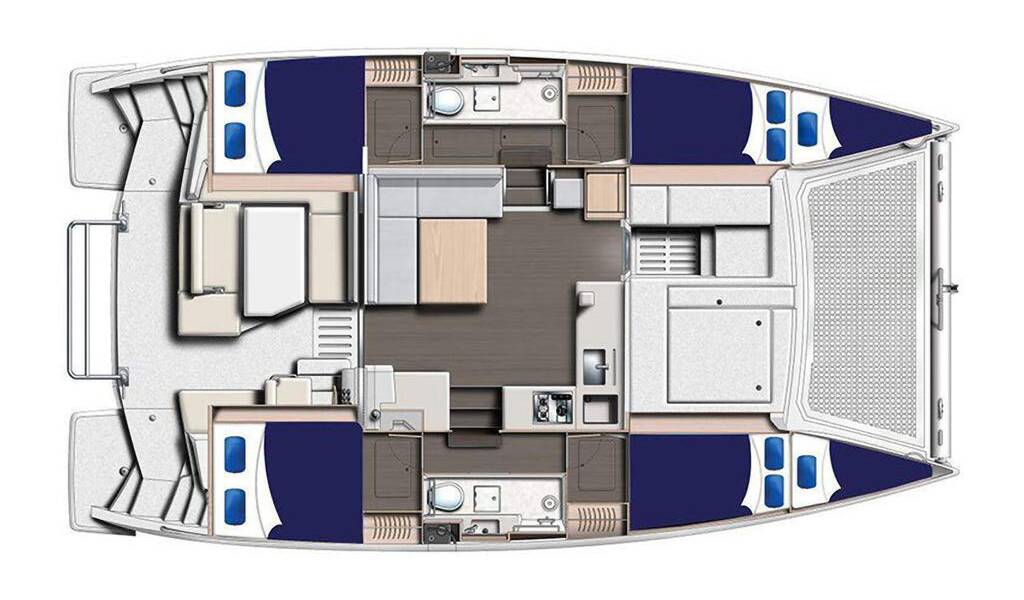Catamaran Leopard 40 Derya, built in 2016 is anchored in the Tivat, Marina Solila, Montenegro, Montenegro . It has 4 cabins, can accommodate 8 + 2 people and has 2 toilets. Bed linen and kitchen equipment are included in the price.