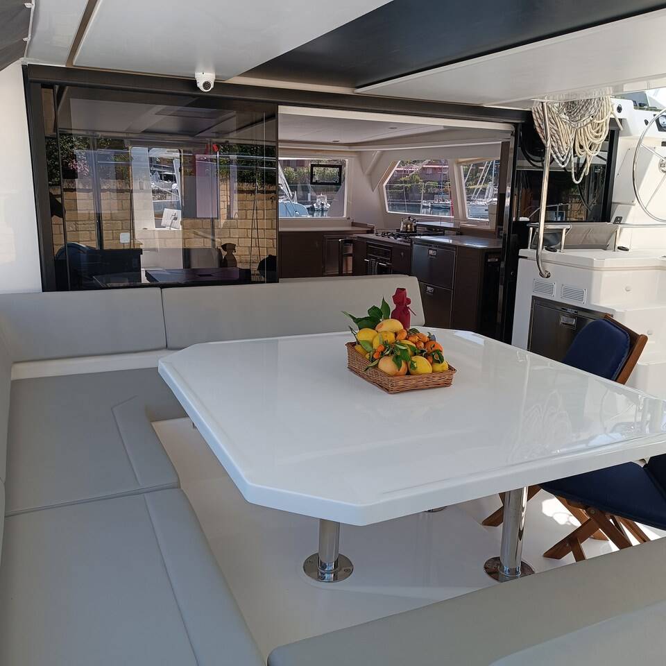 Catamaran Leopard 50 Pannonica, built in 2022 is anchored in the Sicily, Portorosa, Sicily, Italy. It has 5 + 1 cabins, can accommodate 10 + 2 people and has 5 toilets. Bed linen and kitchen equipment are included in the price.