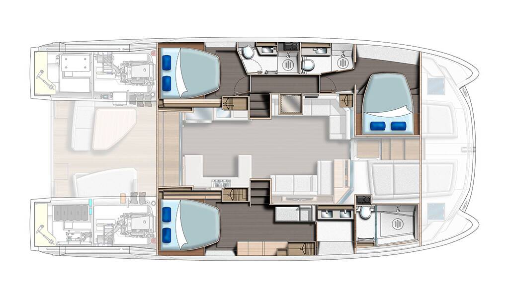Power catamaran Leopard 53 - OW Good Vibes, built in 2021 is anchored in the Marina Frapa, Rogoznica, Šibenik region, Croatia. It has 3 + 1 cabins, can accommodate 6 + 2 people and has 3 + 1 toilets. Bed linen and kitchen equipment are included in the price.