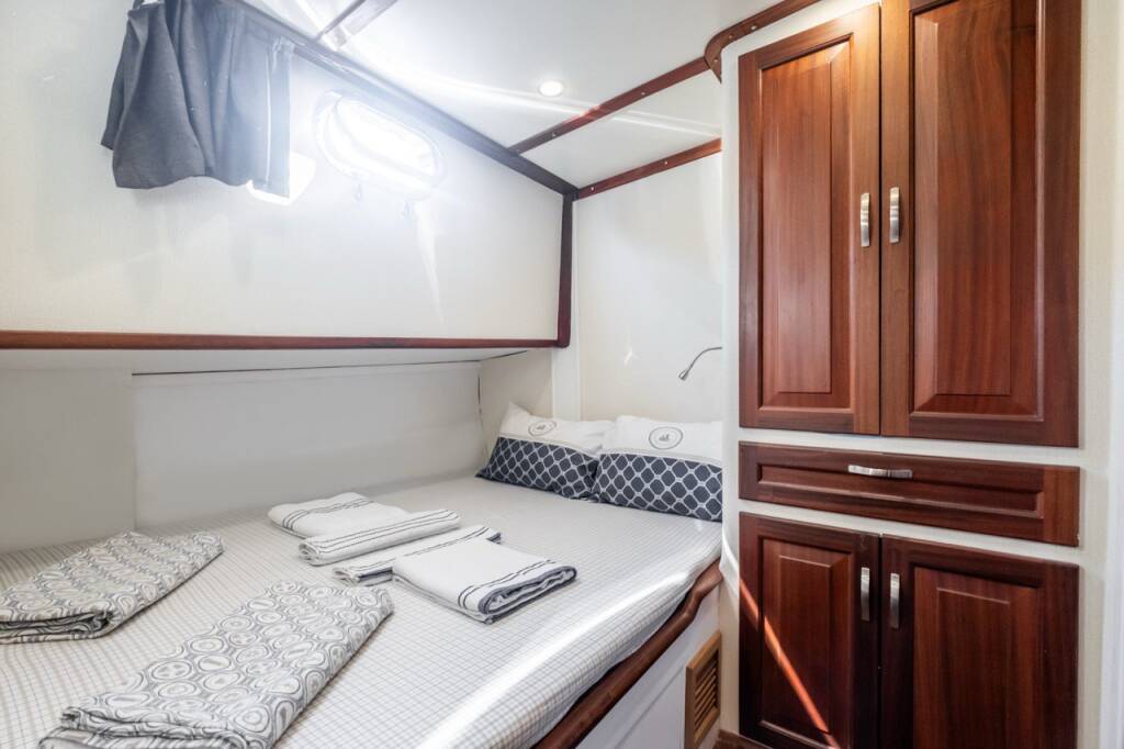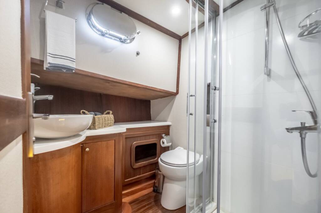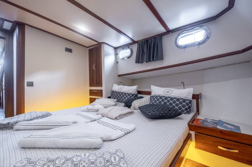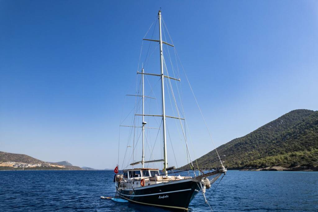Gulet Leylali Leylali, built in 2000 is anchored in the Bodrum Harbour, Aegean, Turkey. It has 5 + 2 cabins, can accommodate 10 + 4 people and has 5 toilets. Bed linen and kitchen equipment are included in the price.