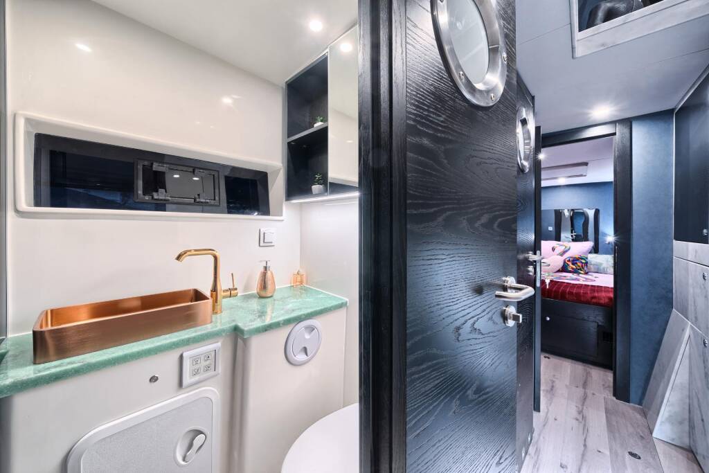 Catamaran Luna 49 Katamaran, built in 2020 is anchored in the Split, MCI Marine Club International, Split region, Croatia. It has 4 + 2 cabins, can accommodate 8 + 2 people and has 4 + 1 toilets. Bed linen and kitchen equipment are included in the price.