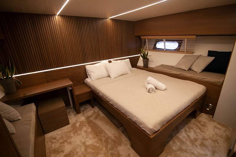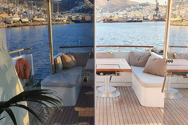 Motor yacht Maiora Renaissance 66 Dini, built in 1991 is anchored in the Mykonos, Cyclades, Greece. It has 4 + 1 cabins, can accommodate 8 + 2 + 3 people and has 3 + 1 toilets. Bed linen and kitchen equipment are included in the price.