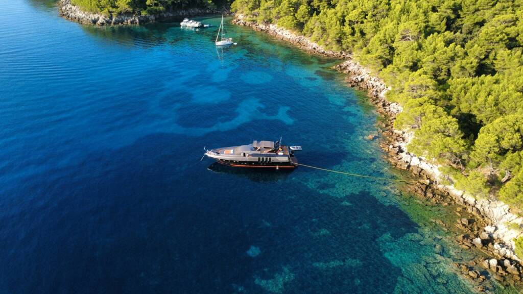 Luxury motor yacht Marshall Marshall, built in 2002 is anchored in the Split Harbour, Split region, Croatia. It has 4 cabins, can accommodate 8 people and has 5 toilets. Bed linen and kitchen equipment are included in the price.