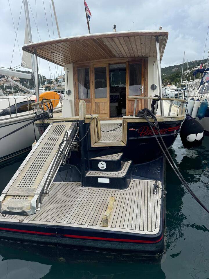 Motor boat Menorquin 160 Balsamico, built in 2005 is anchored in the Palma de Mallorca, Port Andratx, Balearic Islands, Spain. It has 3 cabins, can accommodate 4 people and has 2 toilets. Bed linen and kitchen equipment are included in the price.