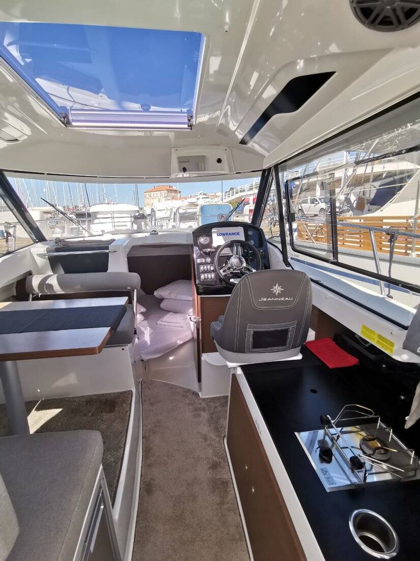 Motor boat Merry Fisher 795 Malizia, built in 2019 is anchored in the Marina Zadar (ex. Tankerkomerc), Zadar region, Croatia. It has 1 cabins, can accommodate 2 + 2 people and has 1 toilets. Bed linen and kitchen equipment are included in the price.