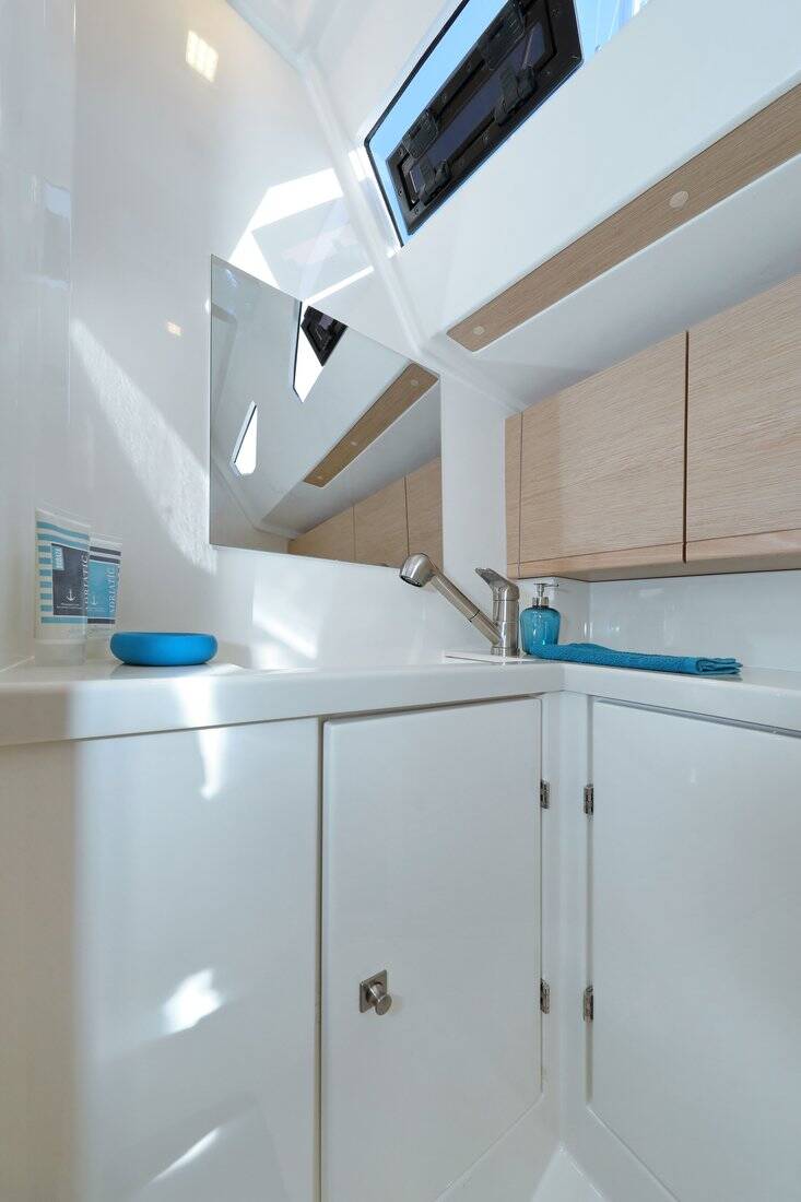 Sailing yacht More 40 Amore, built in 2018 is anchored in the Trogir, Yachtclub Seget (Marina Baotić), Split region, Croatia. It has 3 cabins, can accommodate 6 + 2 people and has 2 toilets. Bed linen and kitchen equipment are included in the price.